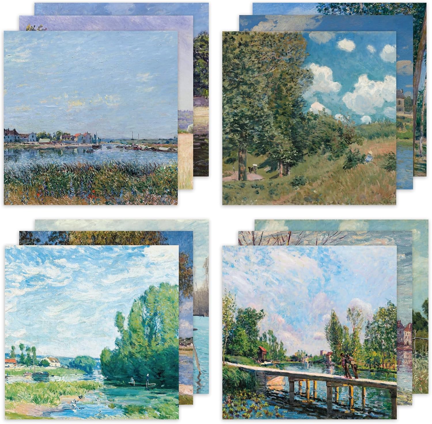 24 Sheets 12 Designs Scrapbook Paper Pad,6"×6” Single-Sided Decopodge Craft Cardstock Paper, Christmas Scrapbooking DIY Decorative Background Cardmaking Supplies.Famous Paintings