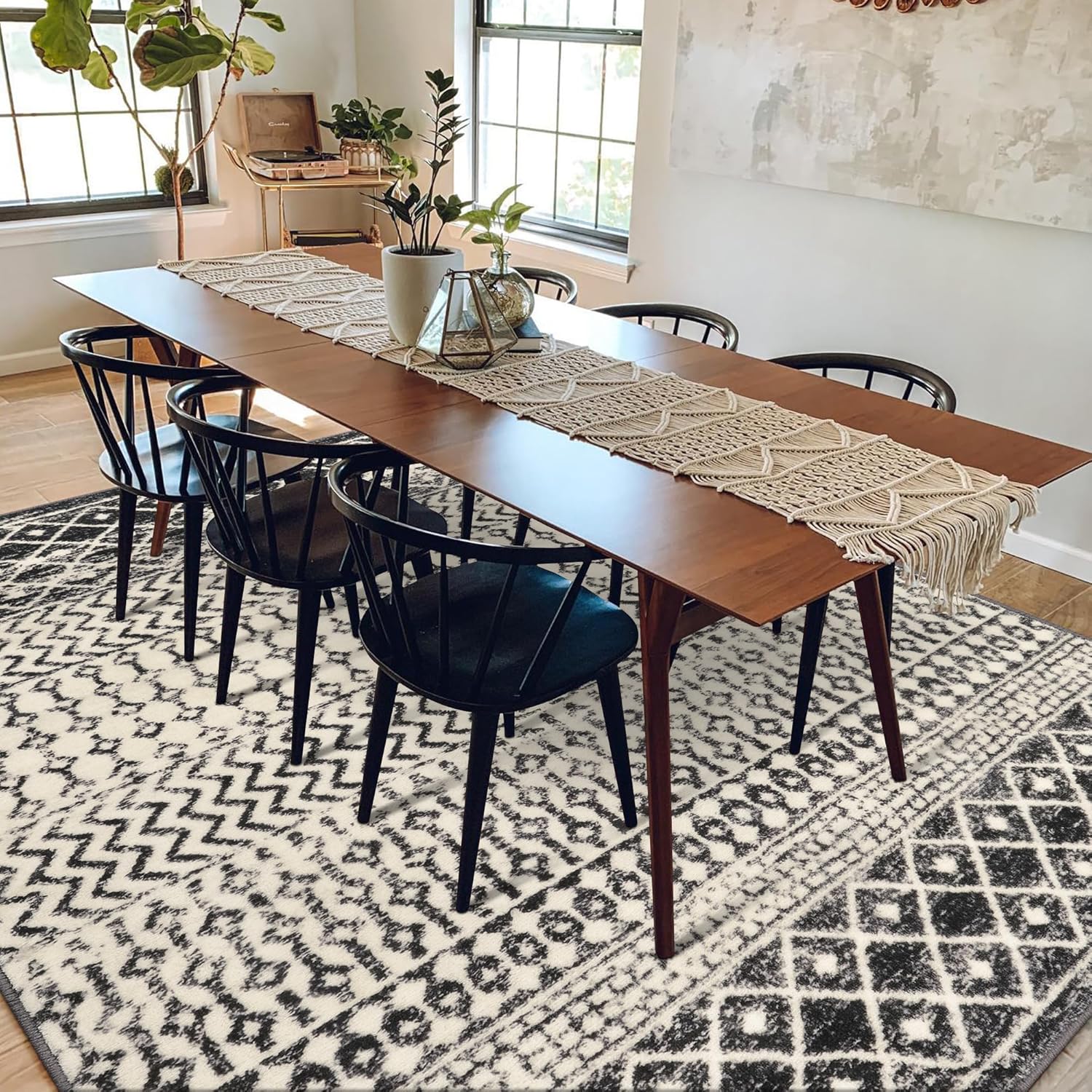 - Easy to Clean Washable Rug: The black rug for living room is easy to care for and washable, Keep your rug looking fresh with daily cleaning using a vacuum.For a deeper clean, simply toss in the washing machine on a gentle cycle with cold water , air dry and not need add bleach
