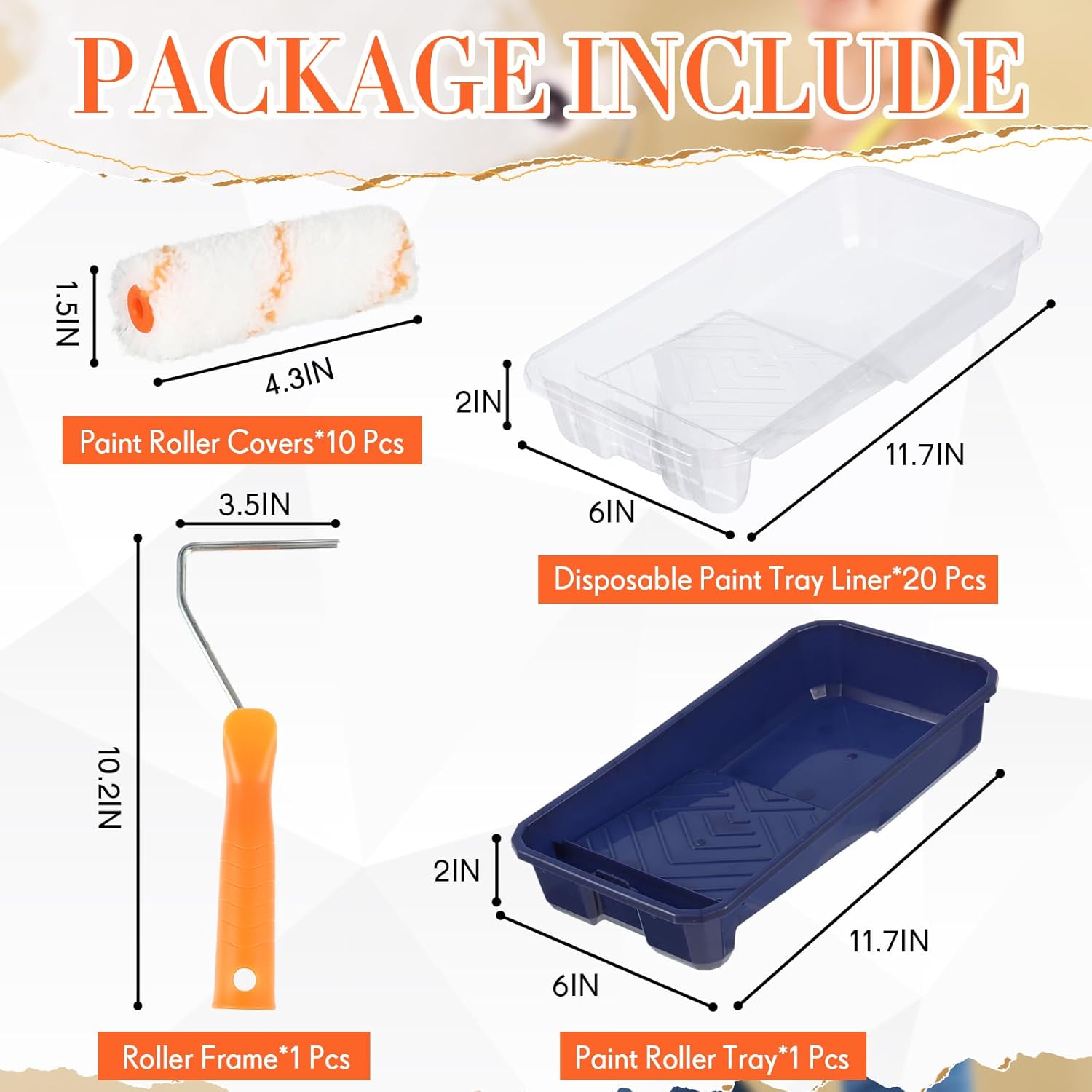 - Borderless Roller Set: the painting roller cover is made of quality polyester material, with large paint absorption, good coverage, no dead angle, no hair loss, no paint leakage and no splash; The paint tray liners are made of iron and matched with plastic handle, comfortable, effortless, simple and convenient to use