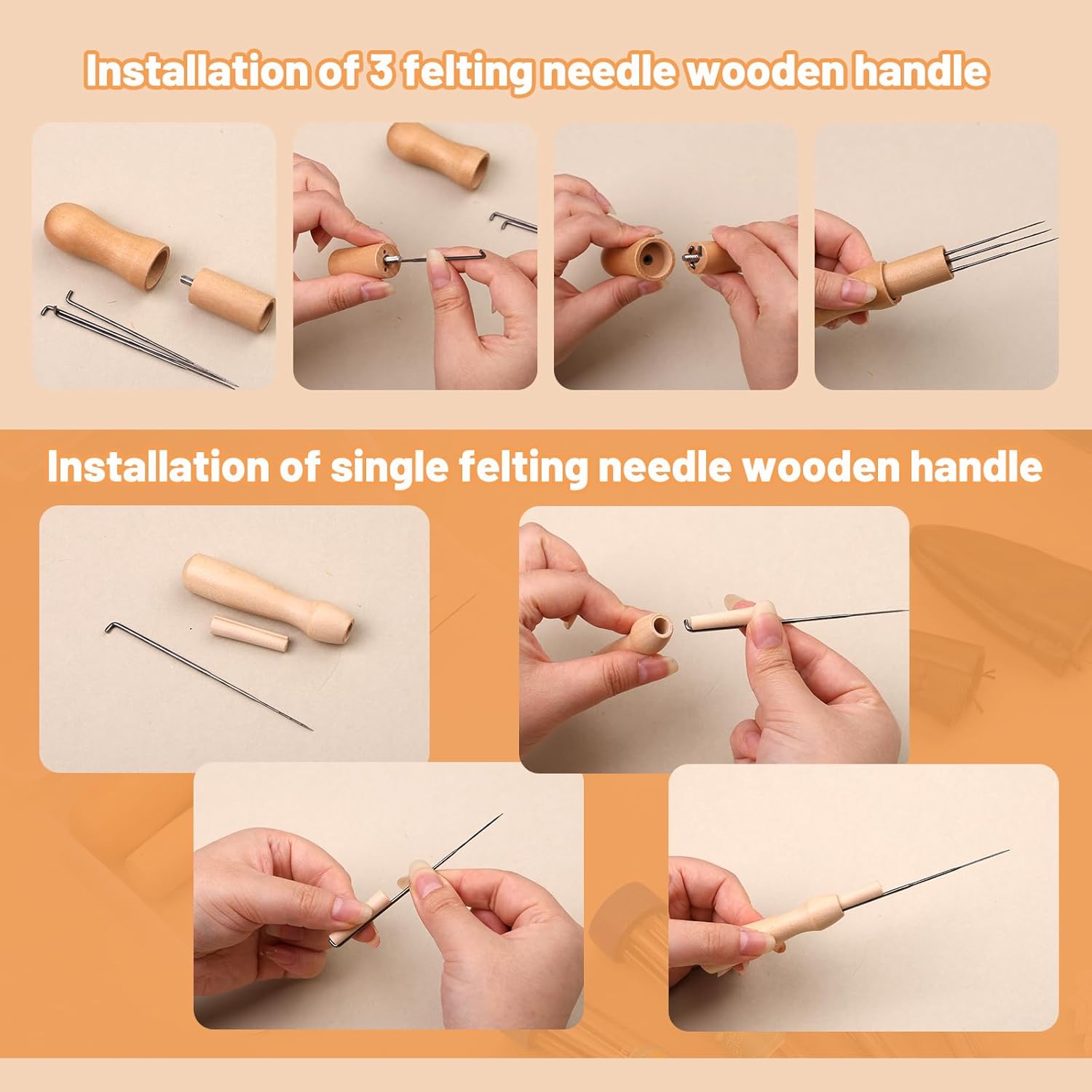 - Premium Material: The felting needles are made of high-quality metal, hard and not easy to break, and very durable. The felt needle holder is made of solid wood, the handle is strong, comfortable to hold, and doesn't tend to slip, and it can be used for a long time.