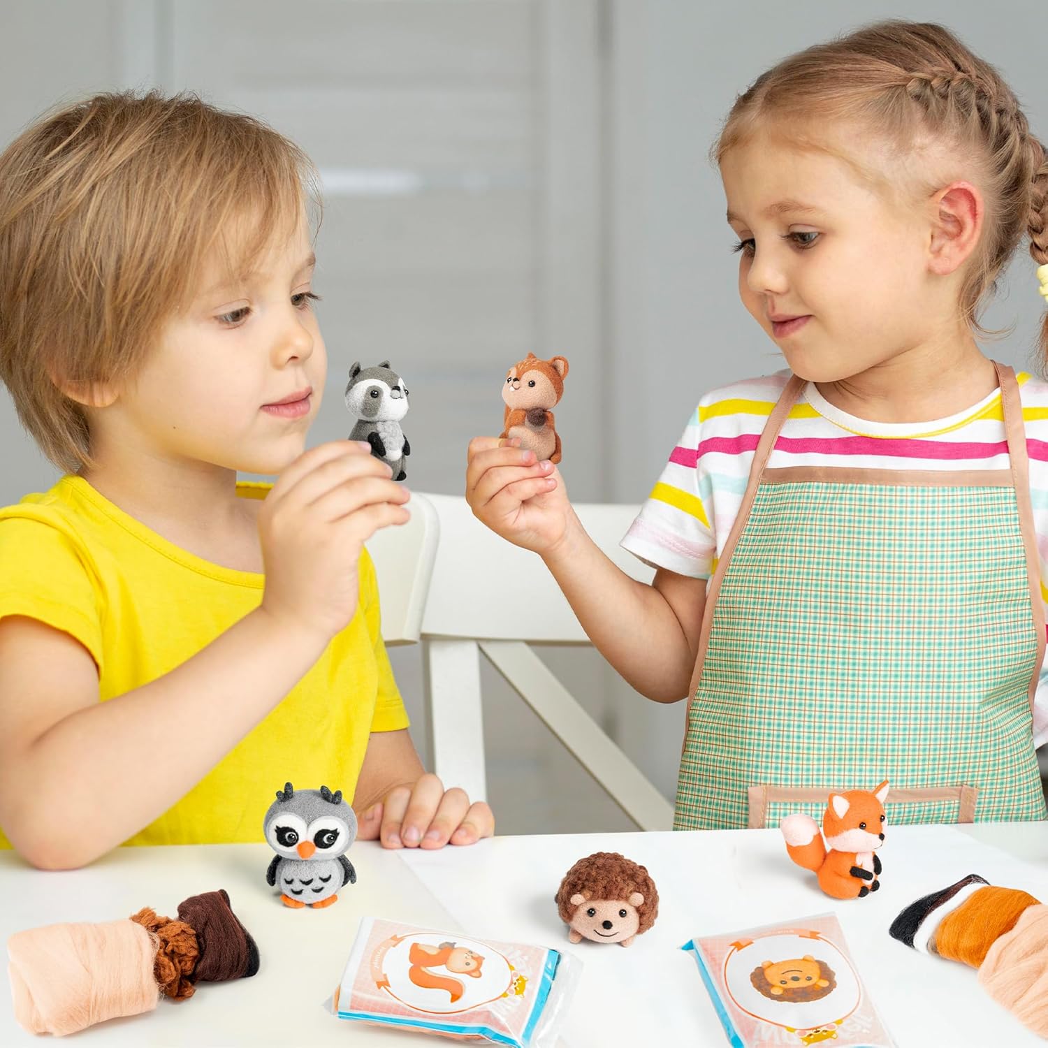 WATINC Needle Felting Kit - 5 Set Unique Different Cute Doll Wool Felt Needle Tools Foam Pad Instruction, DIY Home Decoration Craft Party Supplies for Art Work Starter Beginners (Woodland Animal)