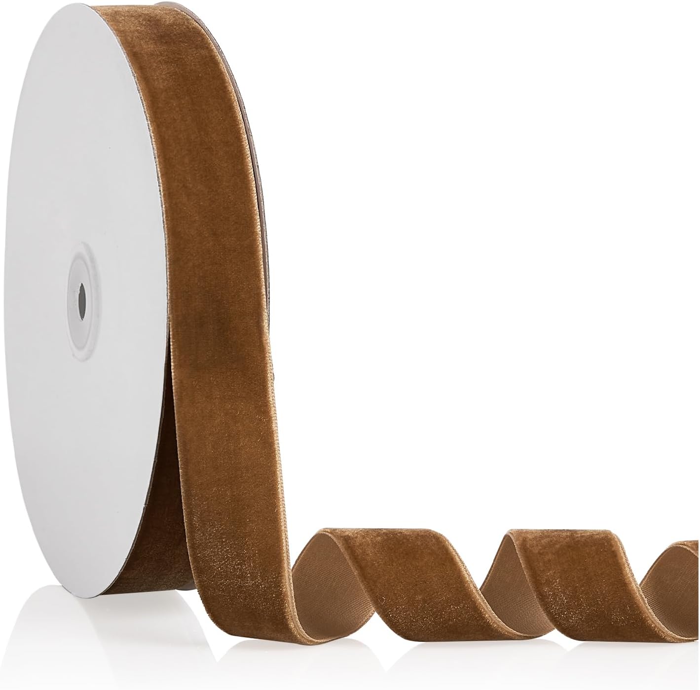 1" X 20 Yards Khaki Velvet Ribbon for Christmas Tree Wreath Decoration Handmade Crafts Ornaments Gift Wrapping & Bow Making