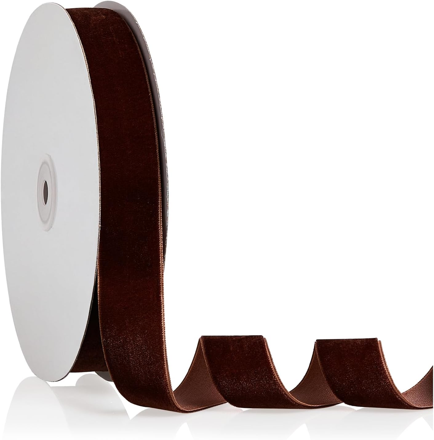 1" X 20 Yards Brown Velvet Ribbon for Christmas Tree Wreath Decoration Handmade Crafts Ornaments Gift Wrapping & Bow Making
