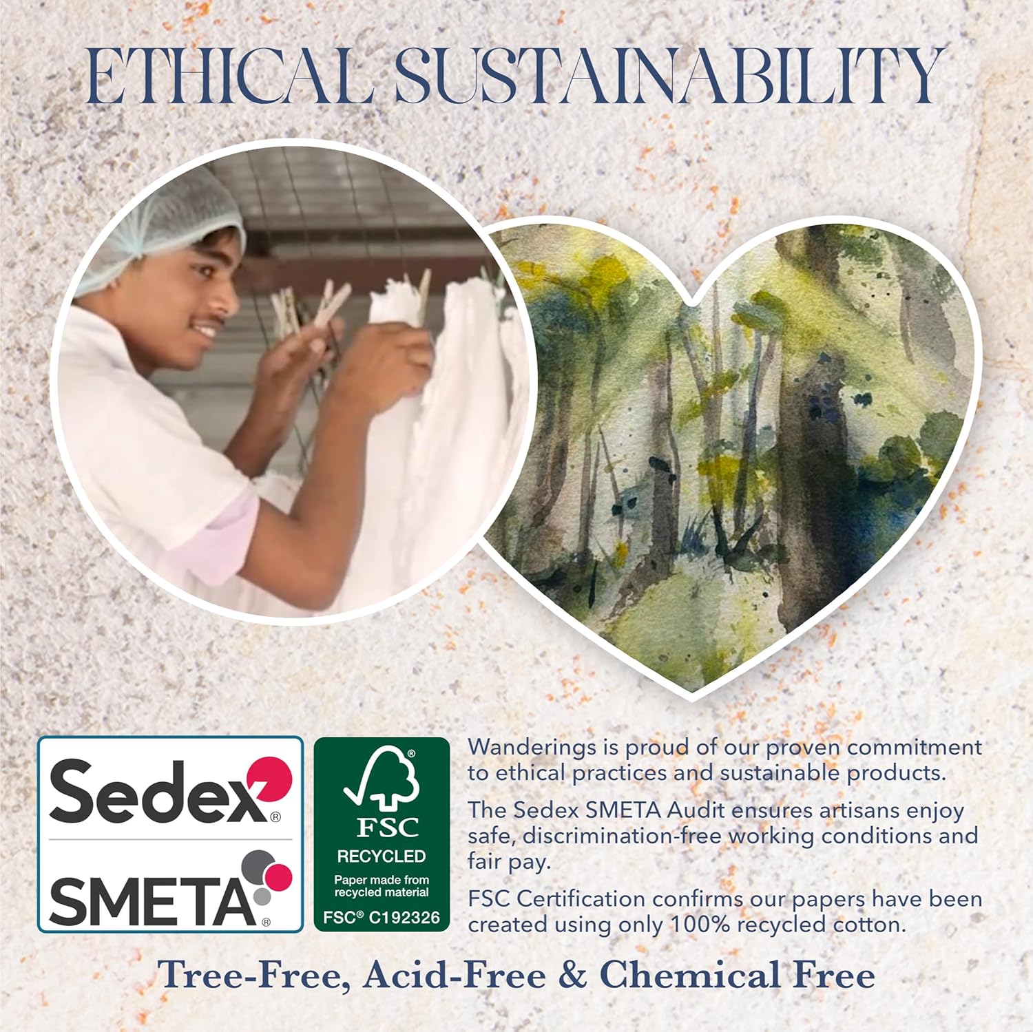 - Tree-free, Acid-free, Chemical-free - Wanderings eco-friendly deckled edge hand-made tags are conscientiously and sustainably sourced using 100% recycled cotton with remnants from the local garment industry. Archival quality for long-term preservation