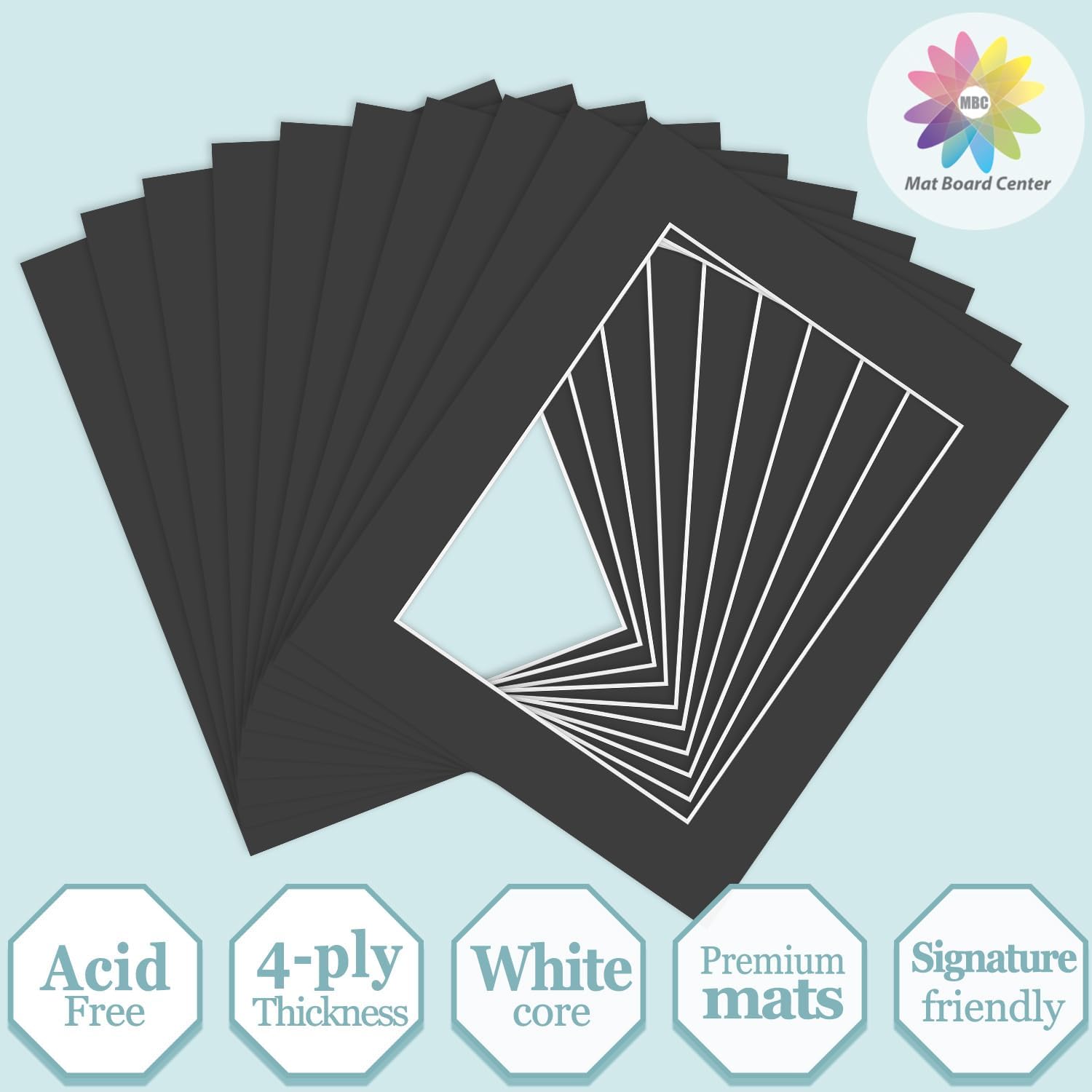 MBC MAT BOARD CENTER, 10 Pack 8x10 for 6x8 Black Picture Mats Frame Mattes, Bevel Cut, Acid Free, 4-ply Thickness