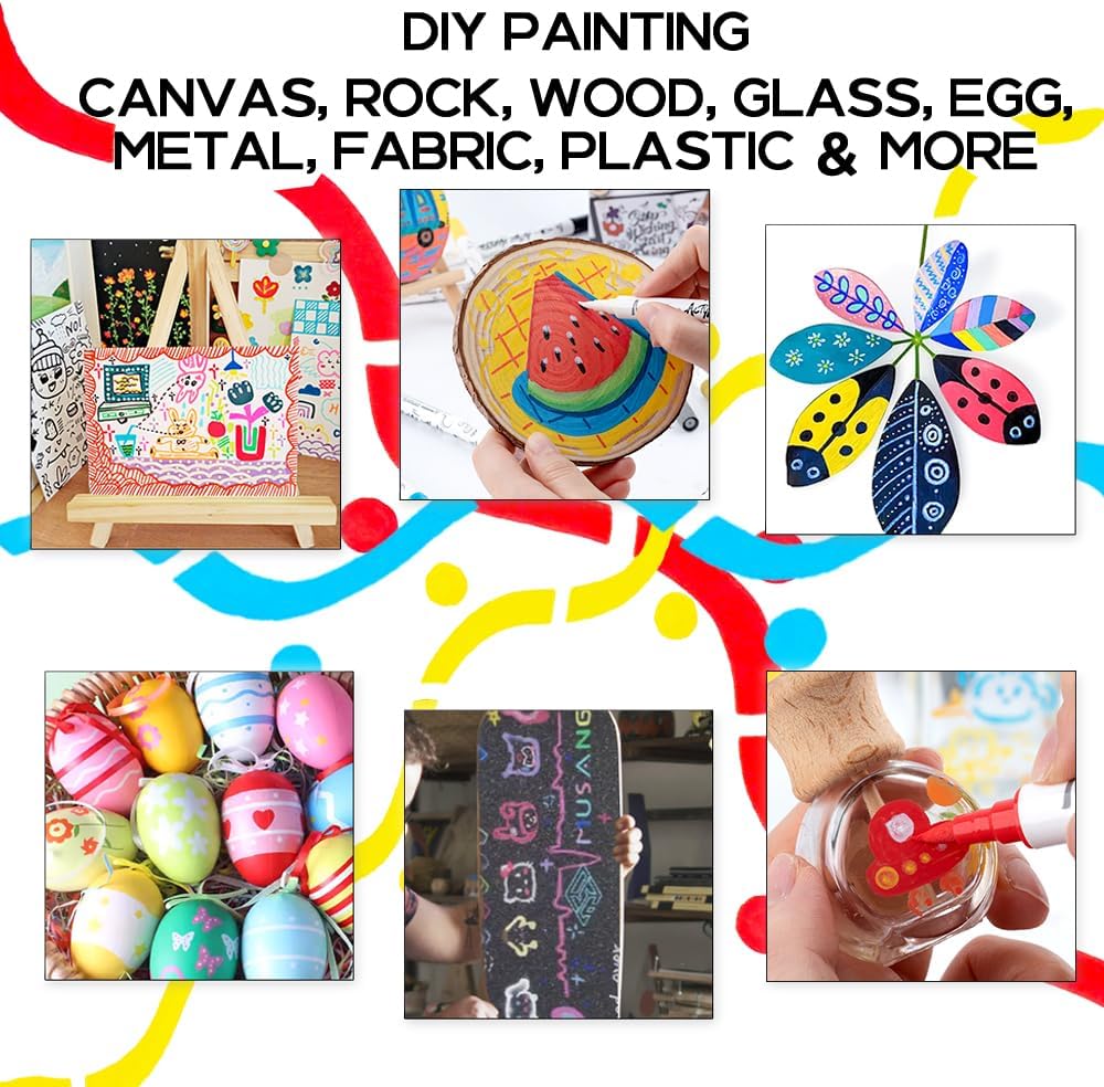 - Versatile acrylic paint pen set - These acrylic paint pens are suitable for wide range of surfaces like: rock, canvas, paper, leather, plastic, etc. Making it perfect for unleashing your creativity and exploring new artistic possibilities. To ensure the longevity of our acrylic markers, it's important to store them properly when not in use. Best store them horizontally.