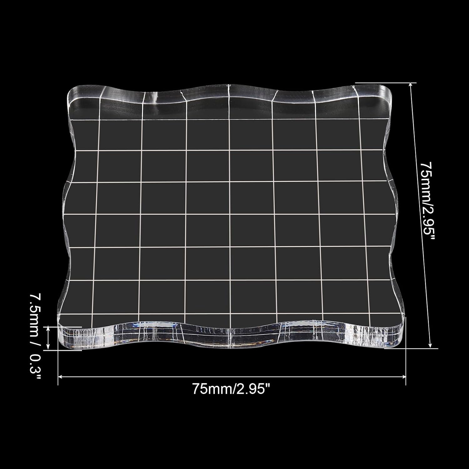 - Color: Transparent; Material: Acrylic; Size: 75 x 75 x 7.5mm / 2.95 x 2.95 x 0.3 inch(L*W*H); Packing List: 2 x Acrylic Blocks for Stamps