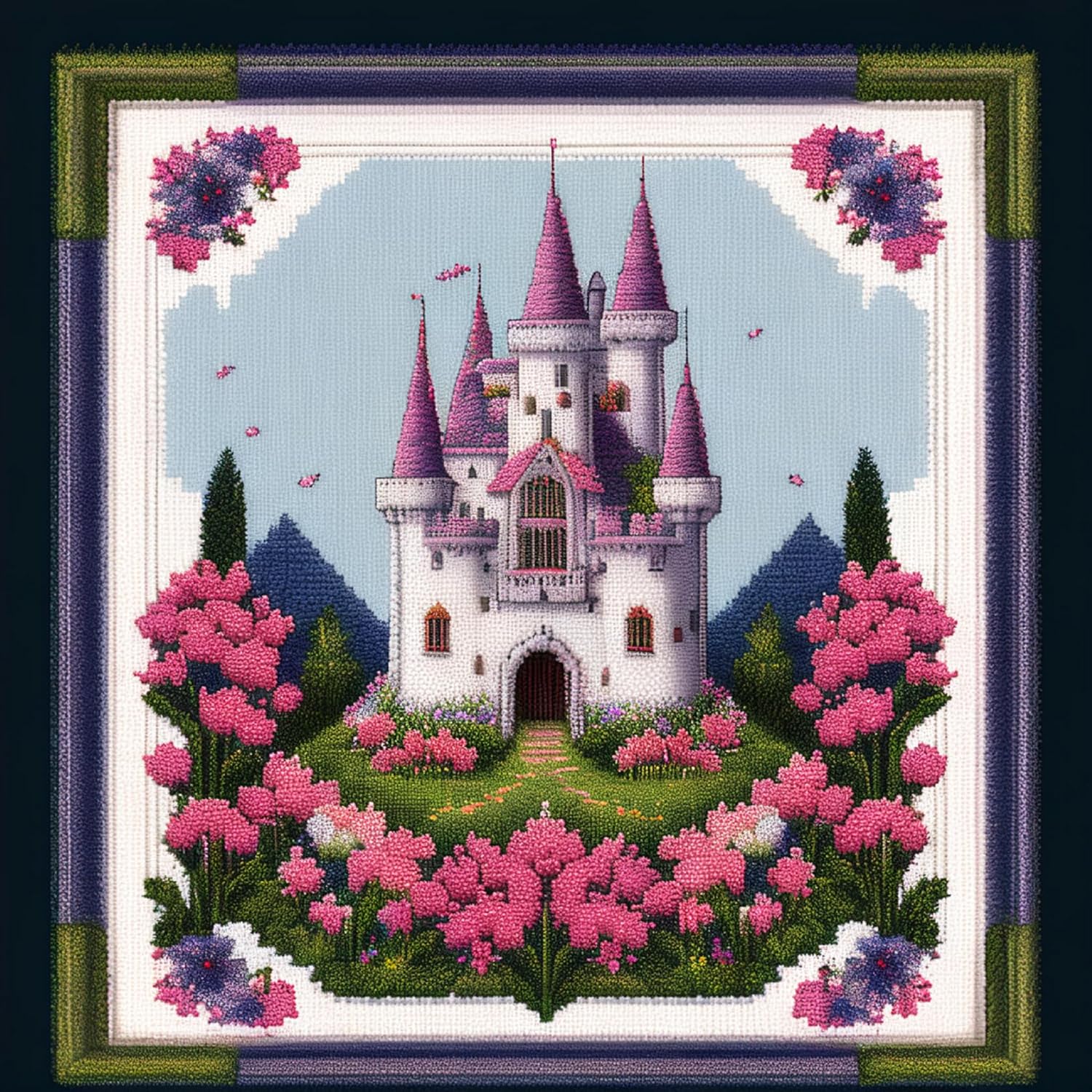 Joyhoor Cross Stitch Kits for Beginners Stamped Cross-Stitch Supplies Needlework preprint Embroidery Kits for Adults DIY Needlepoint Kits Embroidery Patterns 11CT-Colorful Castle 17.7x17.7 inch