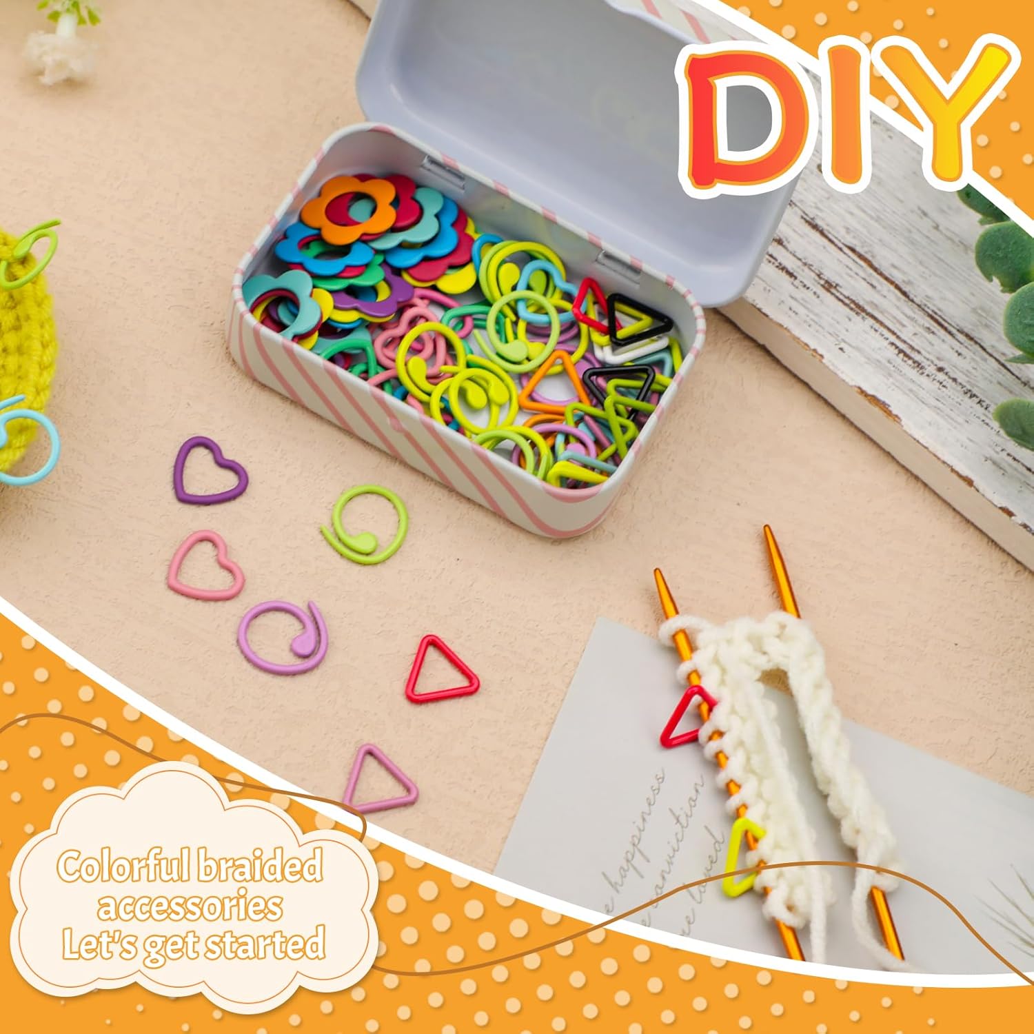 - Easy To Store and Carry๏ผThe stitch markers is paired with a small metal box for easy storage and portability. It can store all marker buckles and other small accessories of appropriate sizes