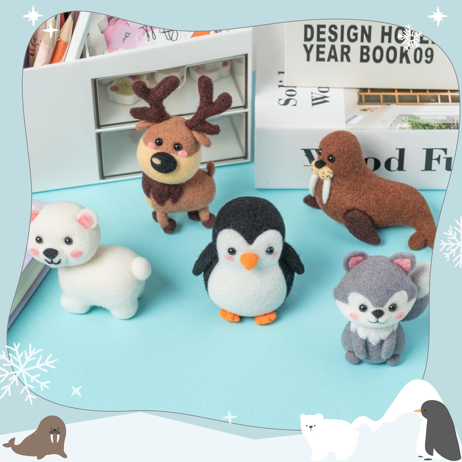 WATINC Needle Felting Kit - 5 Set Unique Different Cute Doll Wool Felt Needle Tools Foam Pad Instruction, DIY Home Decoration Craft Party Supplies for Art Work Starter Beginners (Polar Animal)