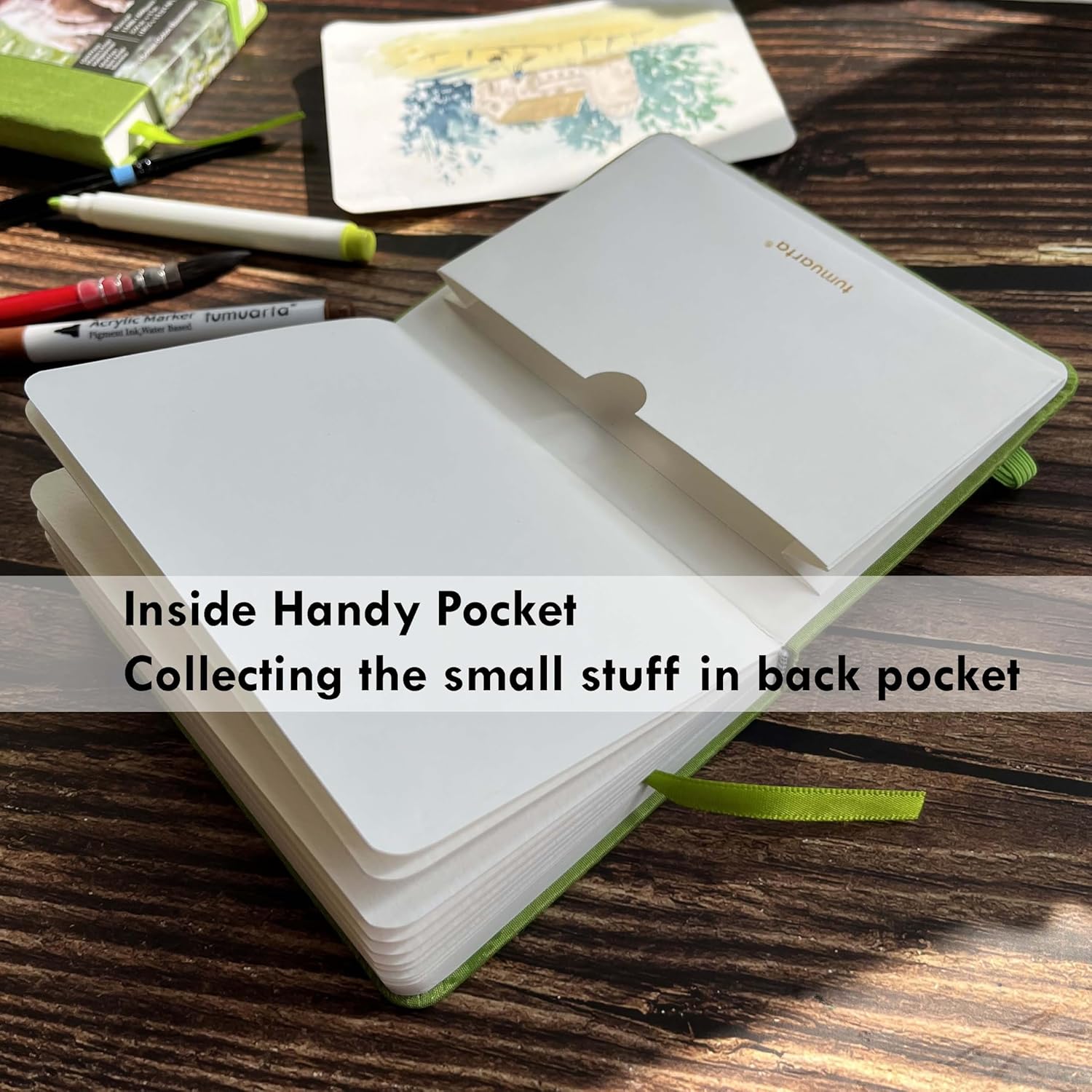 tumuarta Watercolor Sketchbook, 7.5x5, 140 LB, 300GSM, 100% Cotton Paper, Cold Press, 24 Sheets,48 Pages, Watercolor Journal for Use As Travel Sketch Book and Mixed Media Pad On The Go