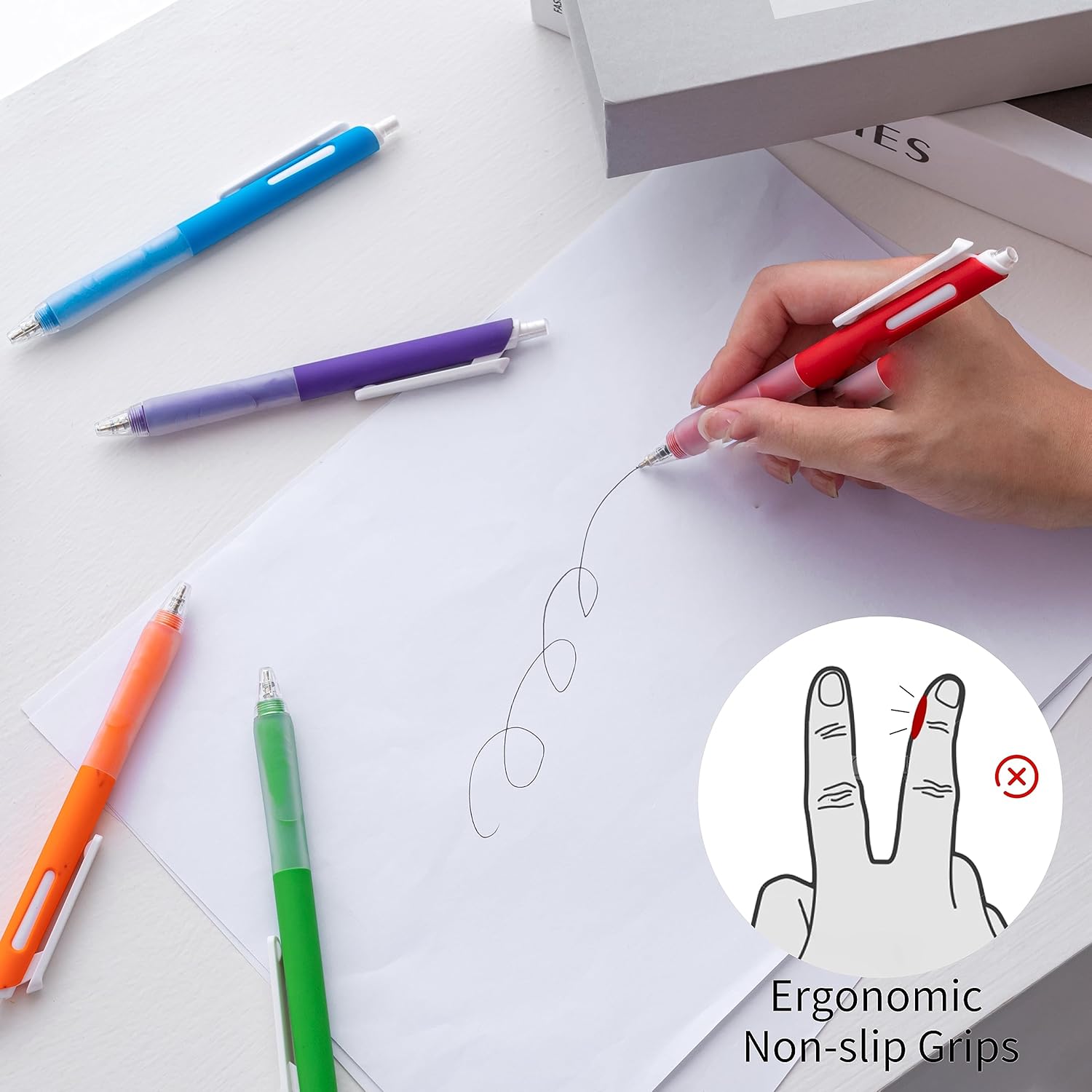 - Super Soft Non-slip Grip: Features grip bring a super soft and comfortable touch feeling which make each ballpoint pen easy to hold