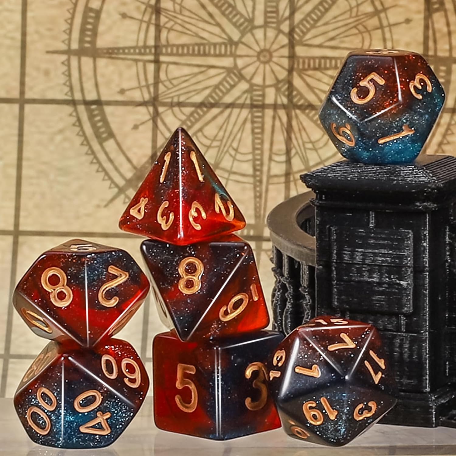 - Easy to read: These polyhedral acrylic dices have golden numbers on each side; The golden numbers are as large as possible on each face for easy reading. All the numbers are engraved on the dice, never fade easily.