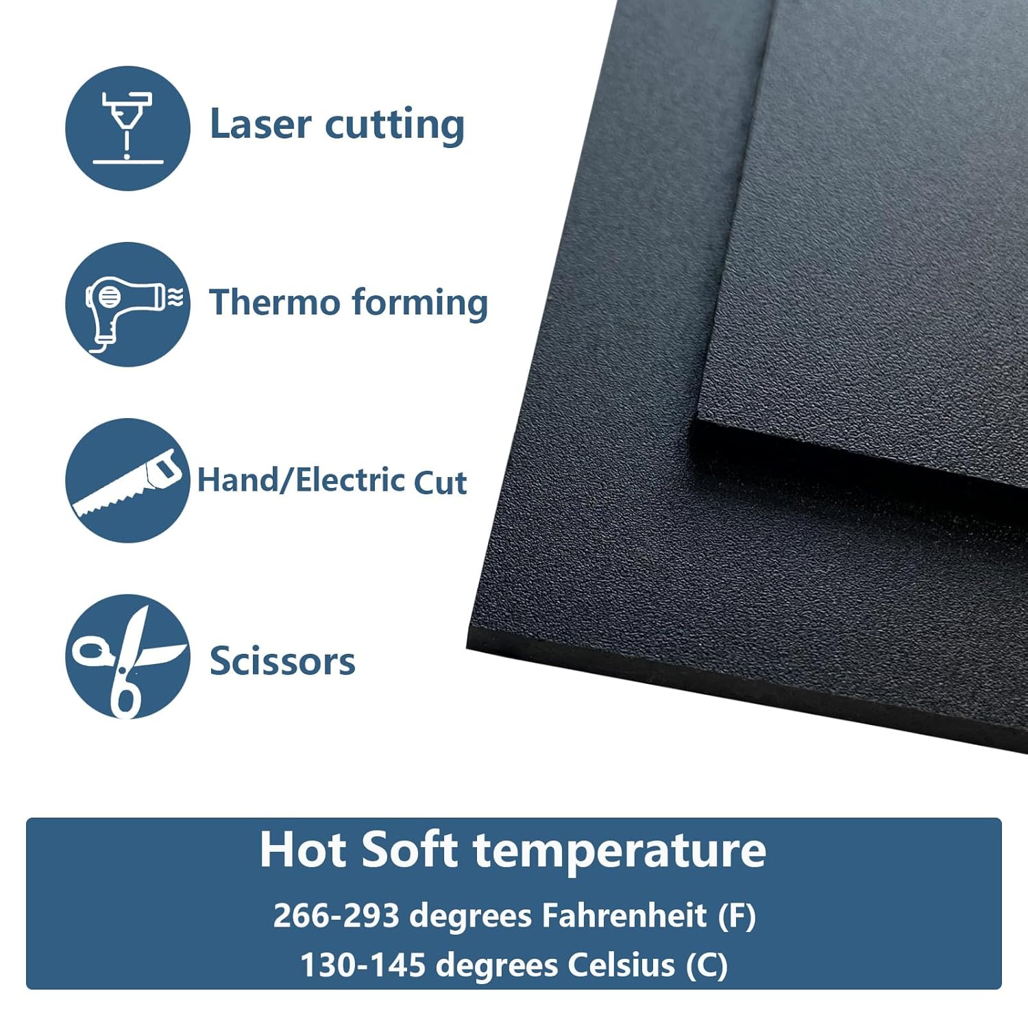 2 Pack Black Plastic Sheet 12x12x0.12 in Flexible High Tensile Plastic Sheets Black Plastic Panel for DIY Materials Handicrafts Home Decoration