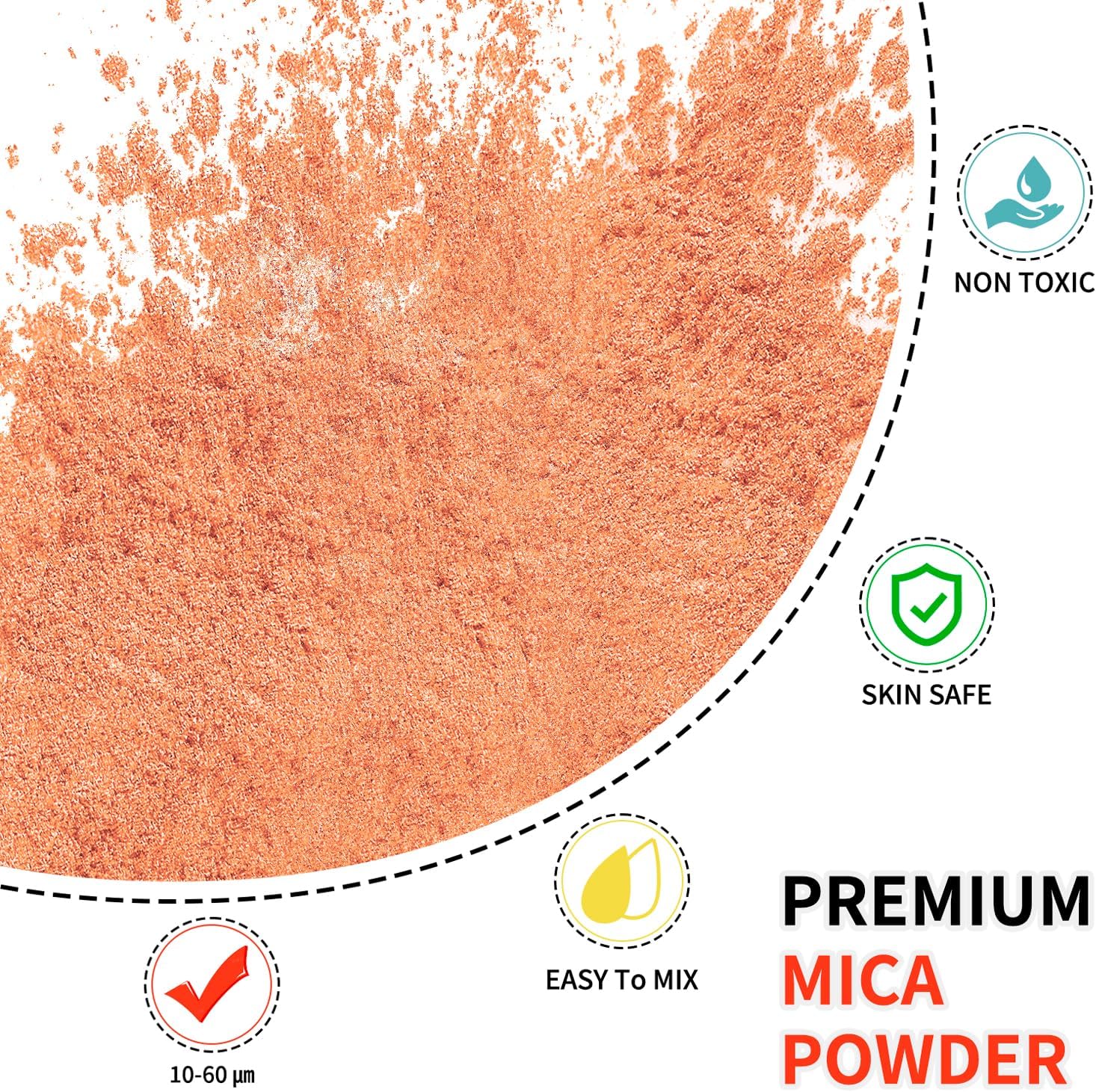 - 【Widely Use】This Premium mica powder are very fine particle pigment that can work well with epoxy resin, soap making, makeup, cosmetics, slime, nails, bath bombs, etc.