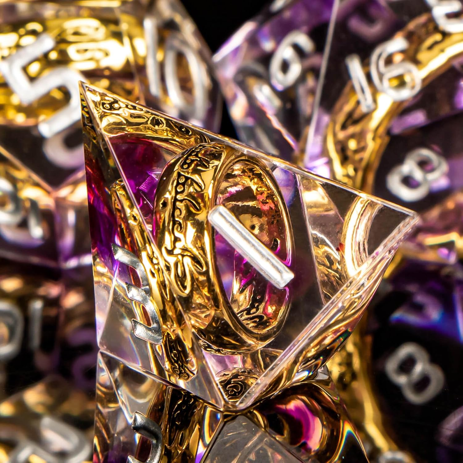 - Ring Dice set: Dice with ring theme, each sharp dice is hand sanded and polished. The numbers on the dice are clear and easy to read, with perfect details and well-made. The d and d dice will get a lot of compliments and envy