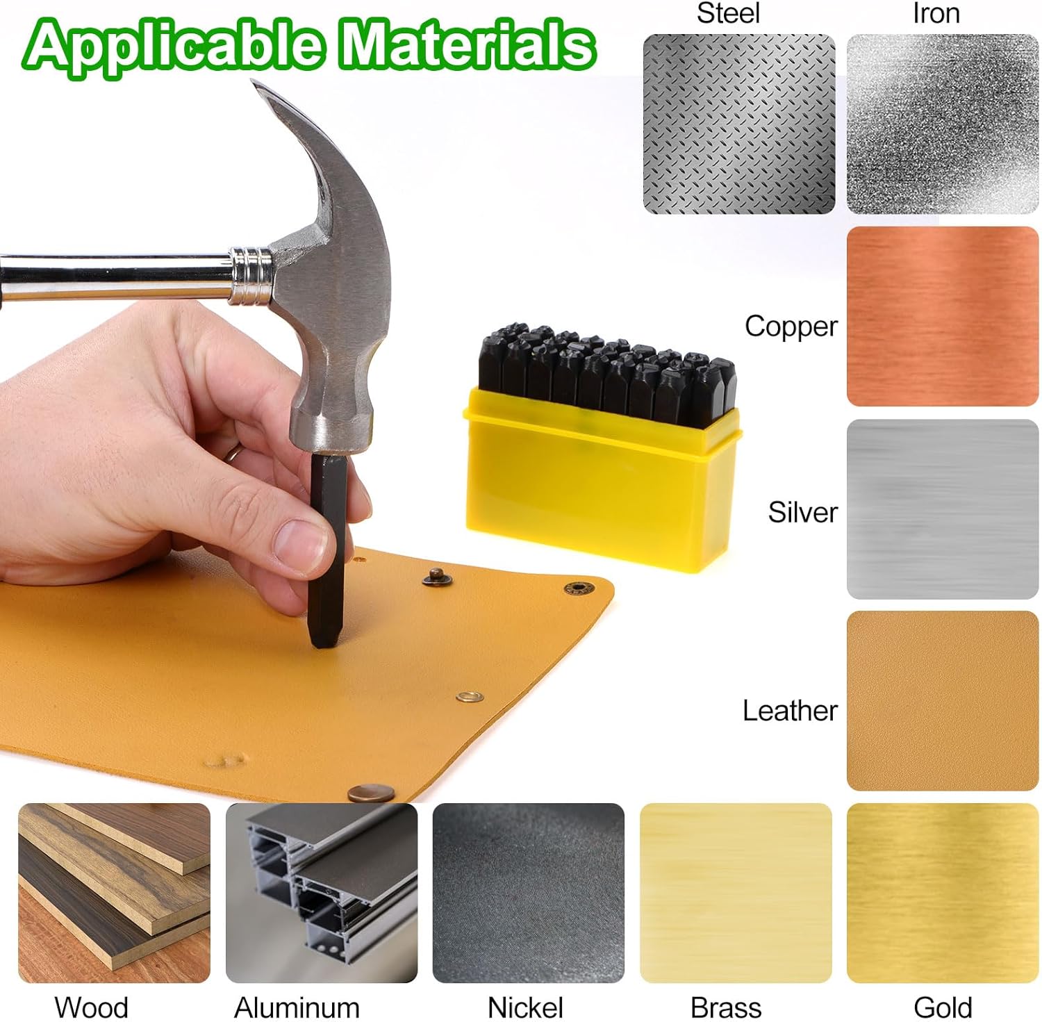 - Versatility Applications - Metal stamping kit are versatile tools that can be used for a wide range of applications, including jewelry making, metalworking, woodworking, leathercraft, and more. They can create permanent imprint on various types of metals, such as aluminum, brass, copper, stainless steel, and even softer materials like leather or wood.