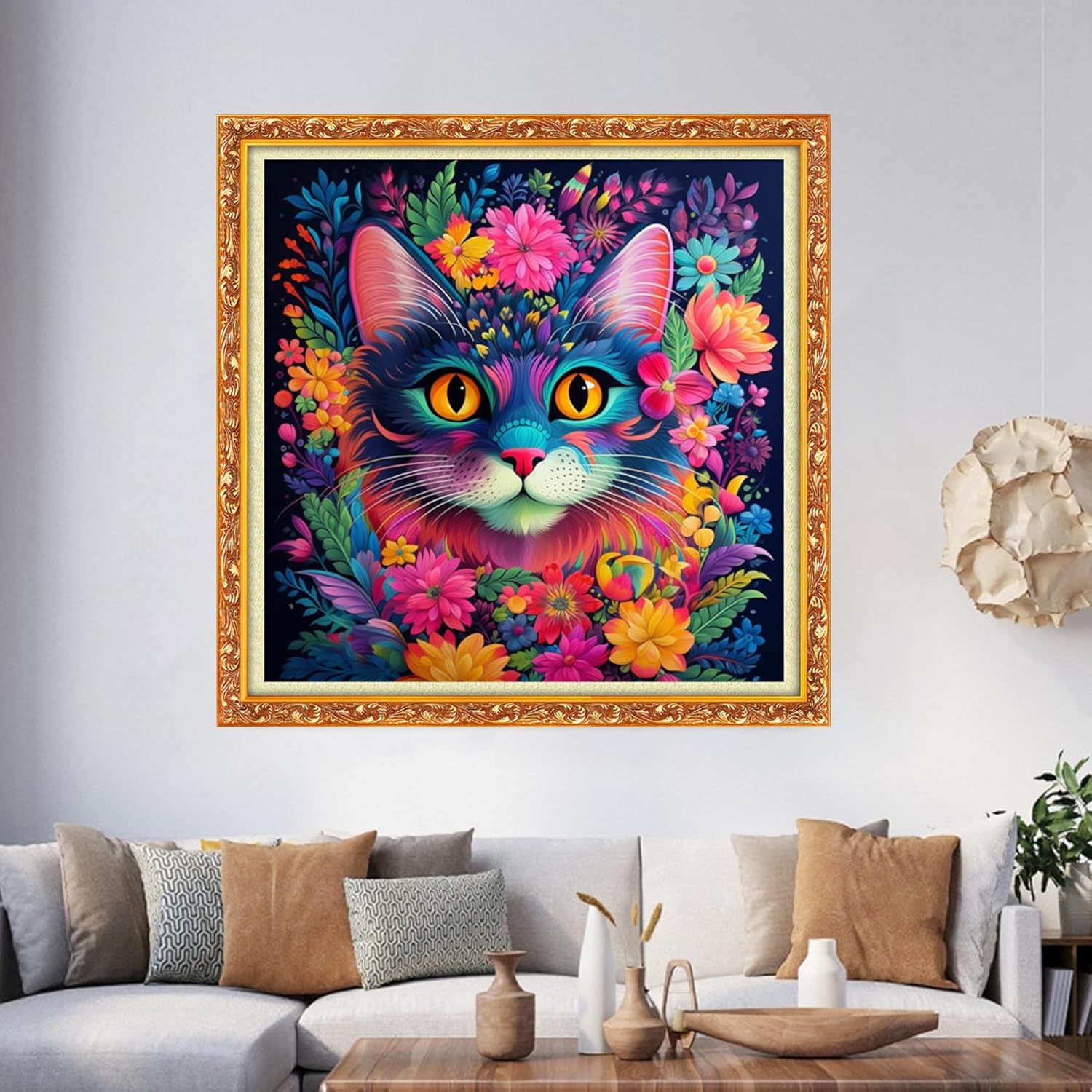Foxhool Beginners Cross Stitch Kits Stamped Full Range of Embroidery Kits for Adults DIY Cross Stitches kit Embroidery Patterns for Needlepoint kit-Colorful Flower Cat 17.7x17.7 inch