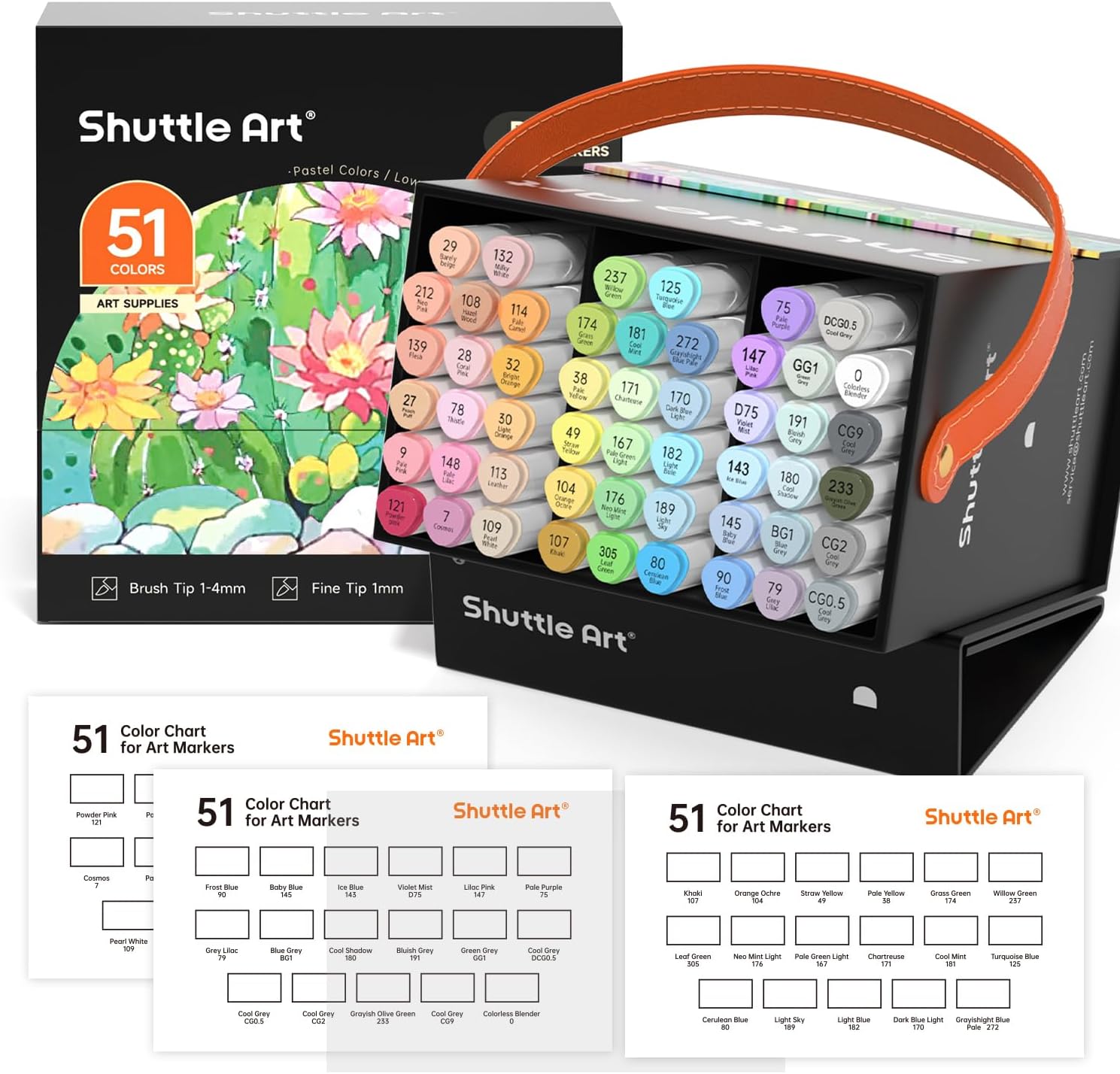 - 51 PASTEL COLORS MARKERS: Shuttle Art 50 pastel permanent markers resist fading over time, bonus 1 colorless blender. These alcohol based marker set featured incredibly fun and trendy shades of soft pastel ink, gives you an appealing set of options to doodle and decorate your jounals, notes and sketch book in a subtle but stylish look. Black zippered case is perfect for storage as well as traveling, color charts can record your color collection all in one place.