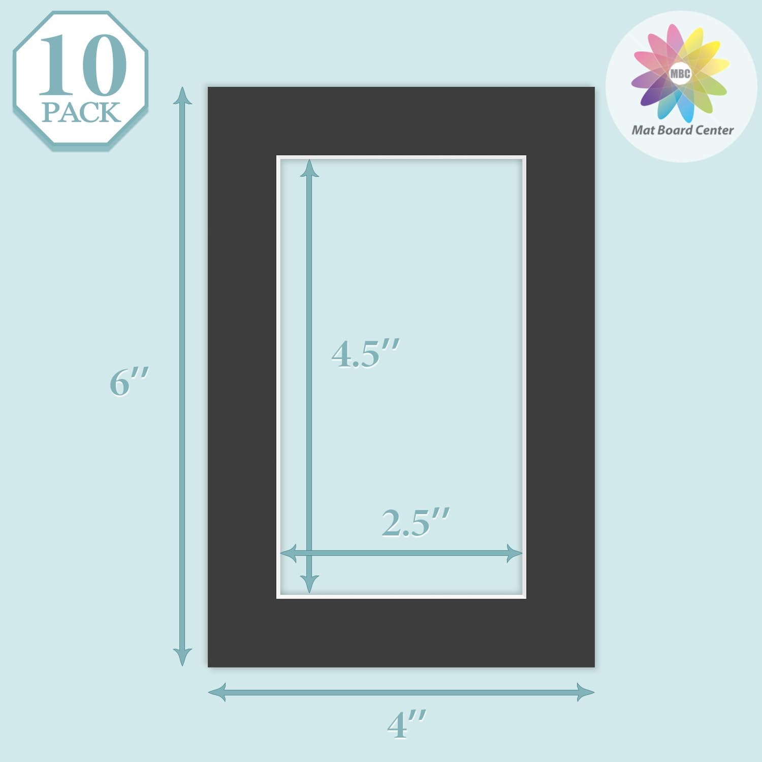 MBC MAT BOARD CENTER, 10 Pack 4x6 for 3x5 Black Picture Mats Frame Mattes, Bevel Cut, Acid Free, 4-ply Thickness