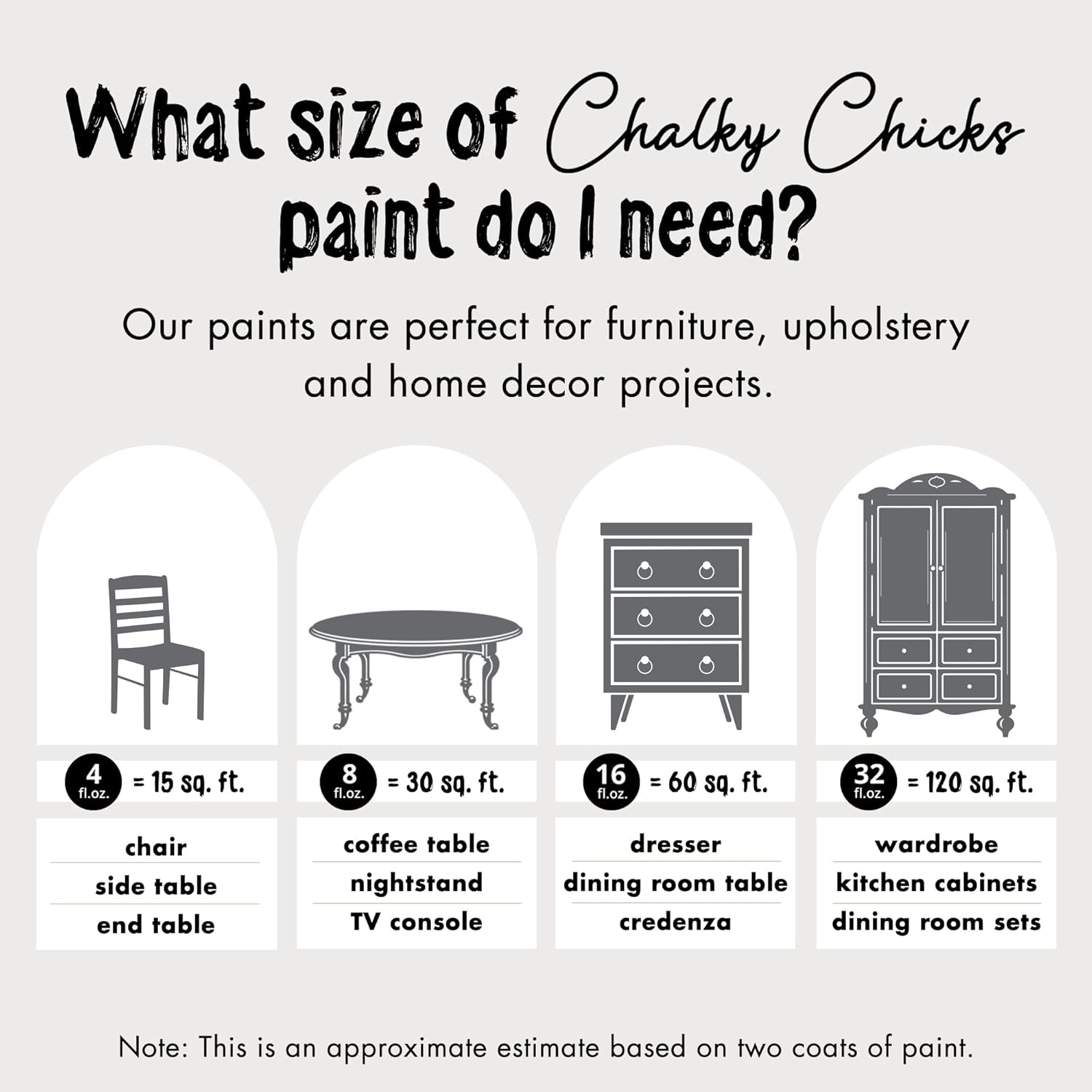 - TRANSFORM FURNITURE AND HOME DECOR WITH EASE: Chalky Chicks will save you time, money, and hassle. No sanding, priming, or multiple coats needed—just start painting your furniture with our cabinet paint no sanding or priming. Our paint is suitable for wood, metal, concrete, textiles, laminate, and more. Whether you prefer navy blue chalk paint, light blue paint, or green chalk paint, our chalk paint for furniture transforms any space with ease, making it ideal for DIY projects & craft painting.