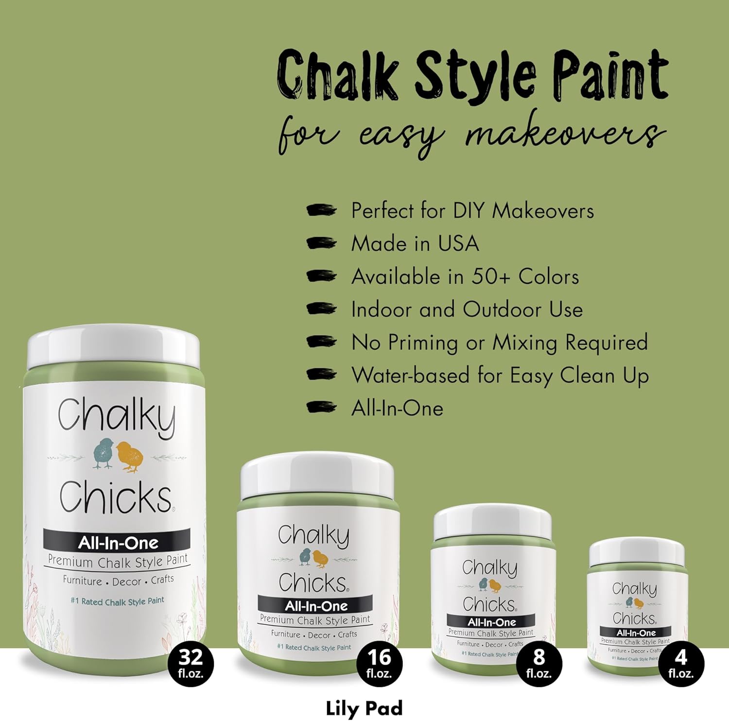 Chalky Chicks All-in-One Chalk Paint for Furniture or Cabinet - 4 Fl Oz - Matte Finish Lily Pad (Green) for Metal, Wood Furniture Paint - No Sanding All-in-One for Home Decor & Crafts, USA Made