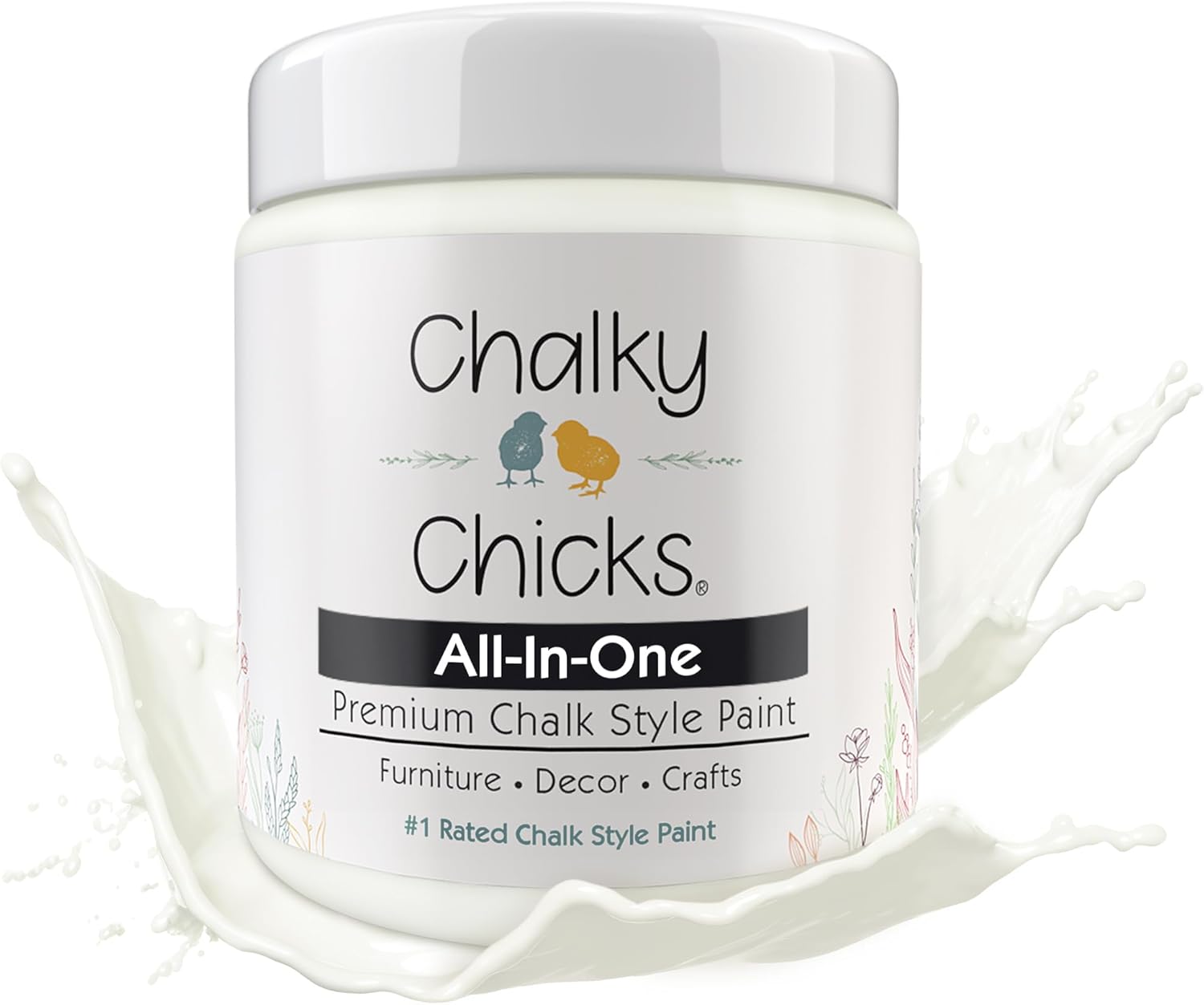 Chalky Chicks All-in-One Chalk Paint for Furniture or Cabinet - 4 Fl Oz - Matte Finish Buttermilk (White) for Metal, Wood Furniture Paint - No Sanding All-in-One for Home Decor & Crafts, USA Made