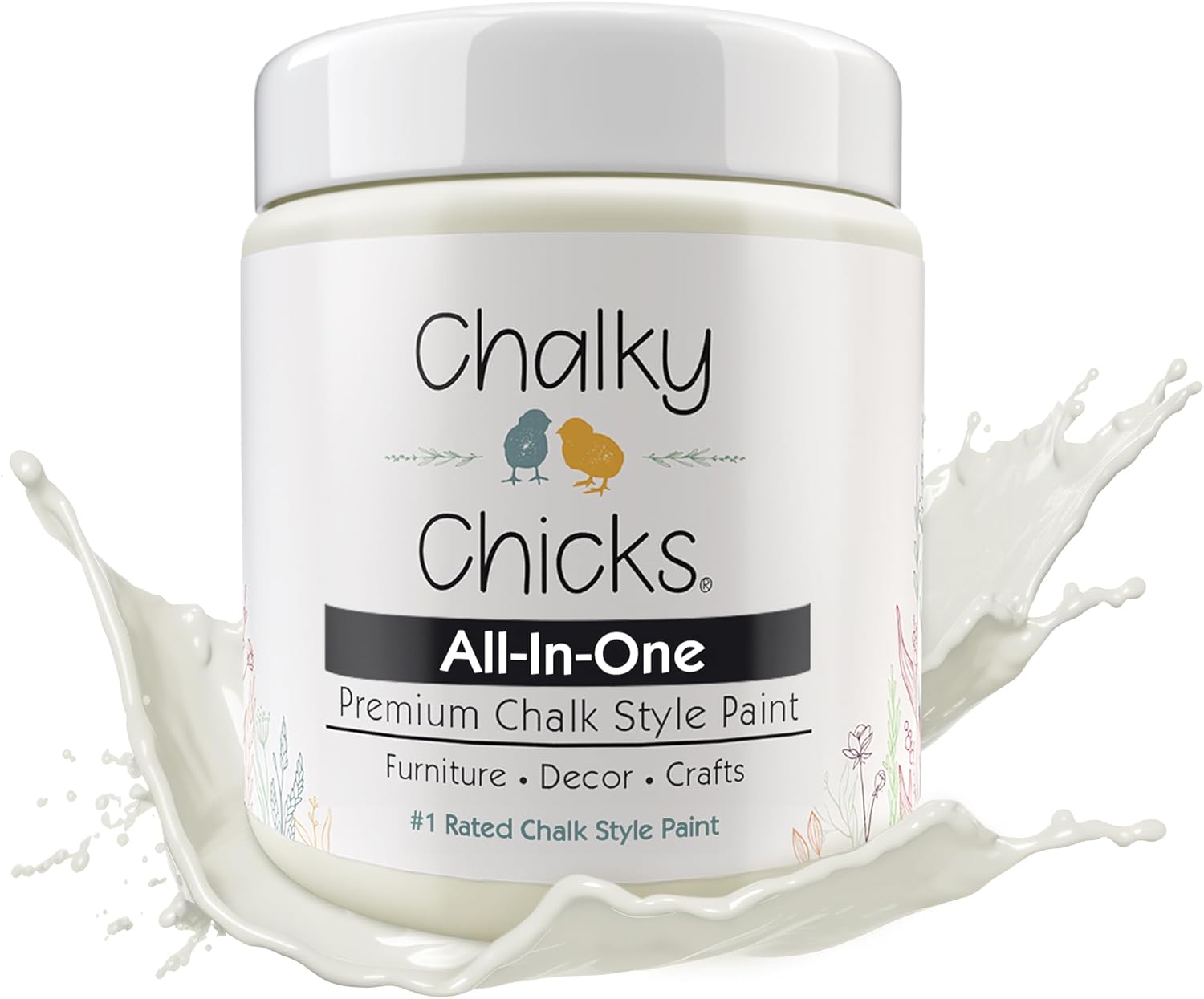 Chalky Chicks All-in-One Chalk Paint for Furniture or Cabinet - 4 Fl Oz - Matte Finish Salt Flats (Off White) for Metal, Wood Furniture Paint - No Sanding All-in-One for Home Decor & Crafts, USA Made