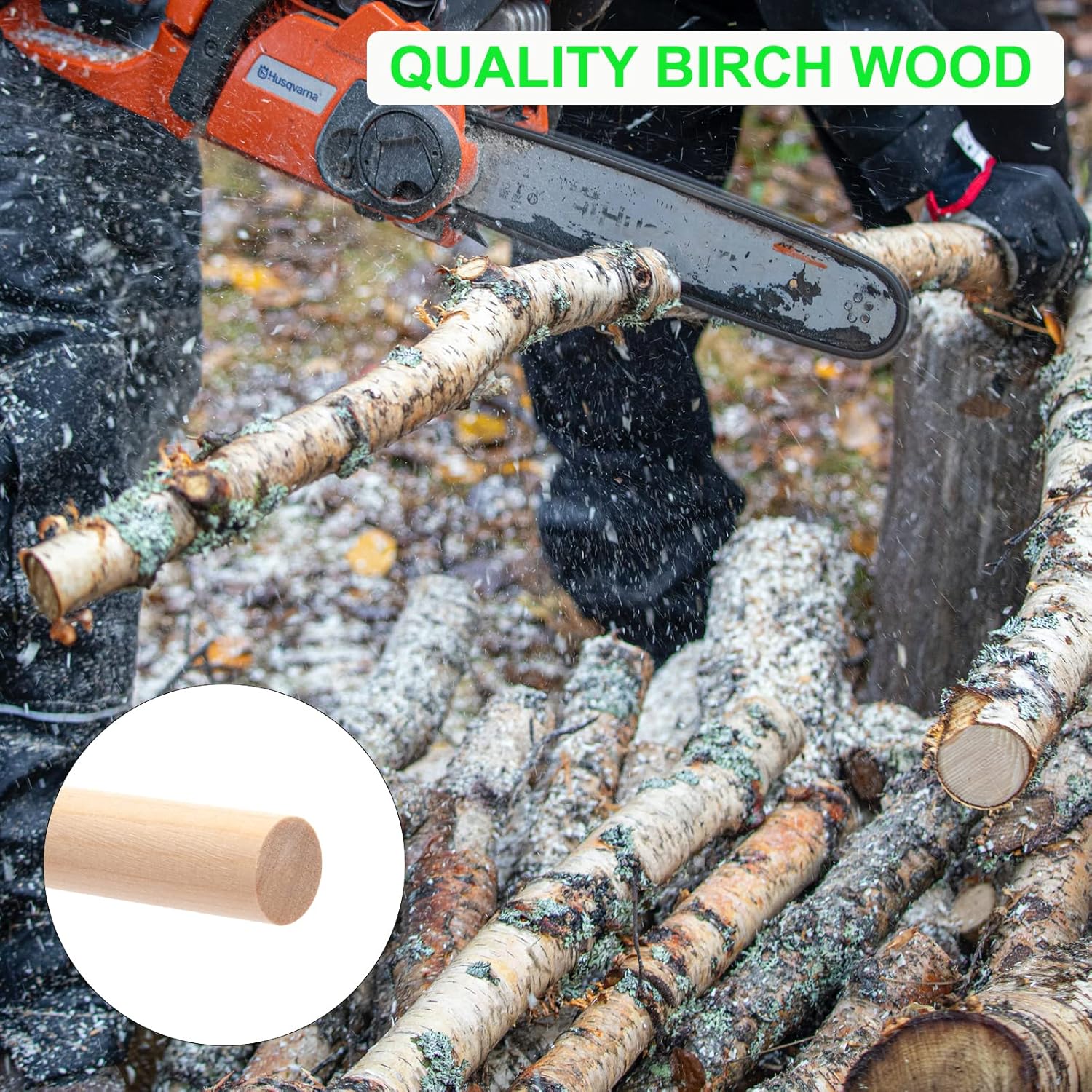 - QUALITY BIRCH WOOD----Our round hardwood dowel rods are made of light-toned birch wood. They are clean and unblemished. There is no need to worry about getting splinters or hurting yourself with these wooden.