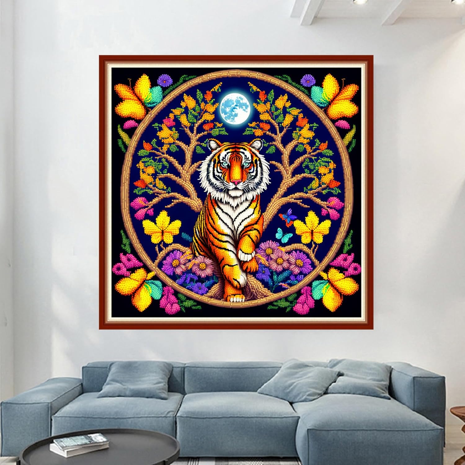 Dimensean Stamped Cross Stitch Kits Full Range of Embroidery Patterns Starter Kits for Beginners Adult or Kids DIY Cross Stitches Needlepoint Kits 11CT-Tiger Wreath 17.7x17.7 inch