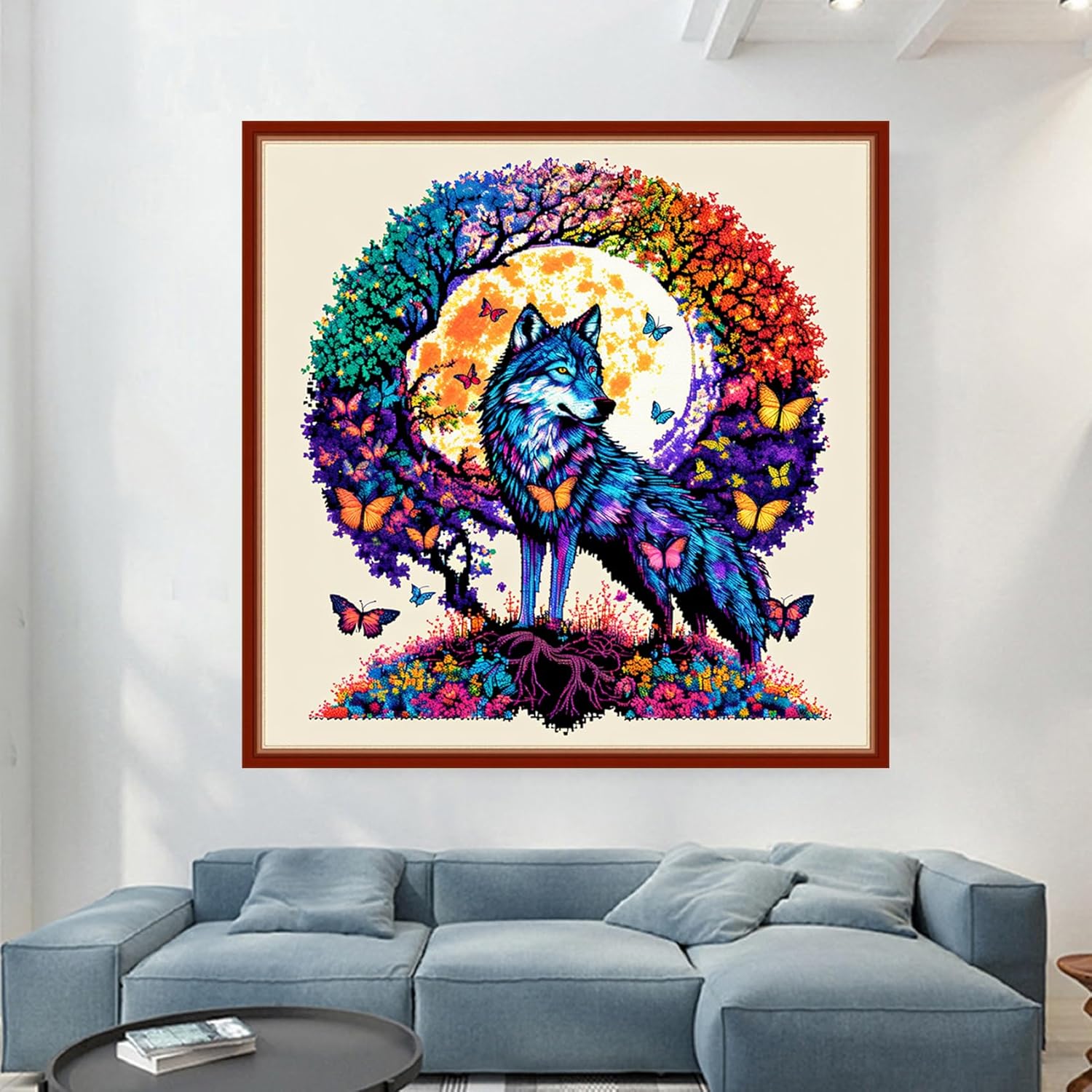 Dimensean Stamped Cross Stitch Kits Full Range of Embroidery Patterns Starter Kits for Beginners Adult or Kids DIY Cross Stitches Needlepoint Kits 11CT-Wolf Wreath 17.7x17.7 inch