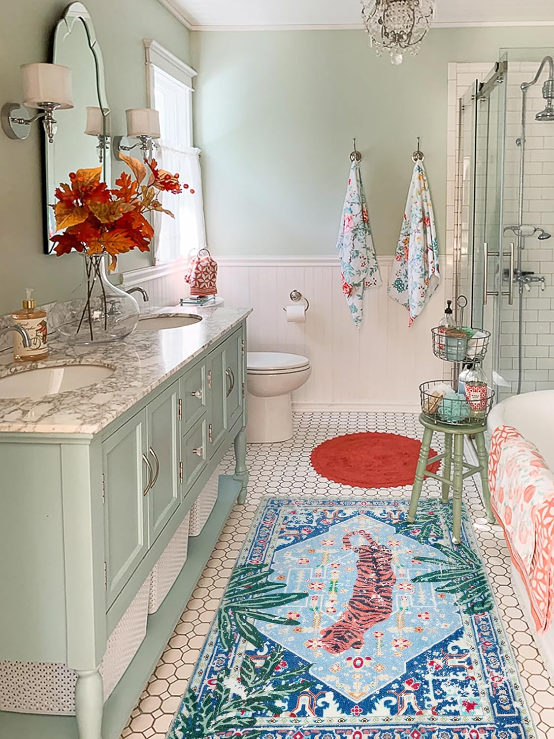- -- WASHABLE SCATTER RUGS -- This soft modern vintage area rug shall be machine washed in cold water. Use mild detergent. Do not bleach or dry clean. Do not use fabric softeners or dryer sheets. Do not wring