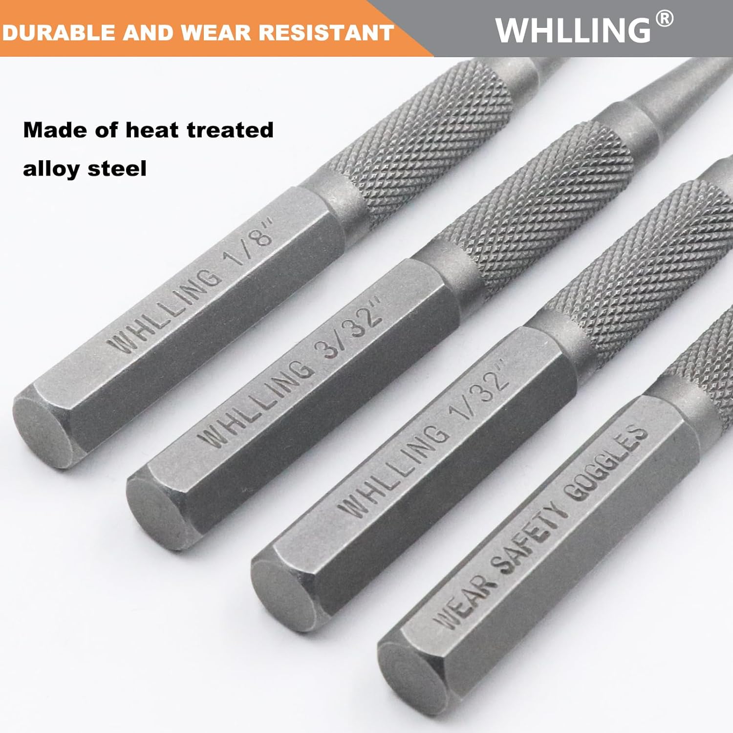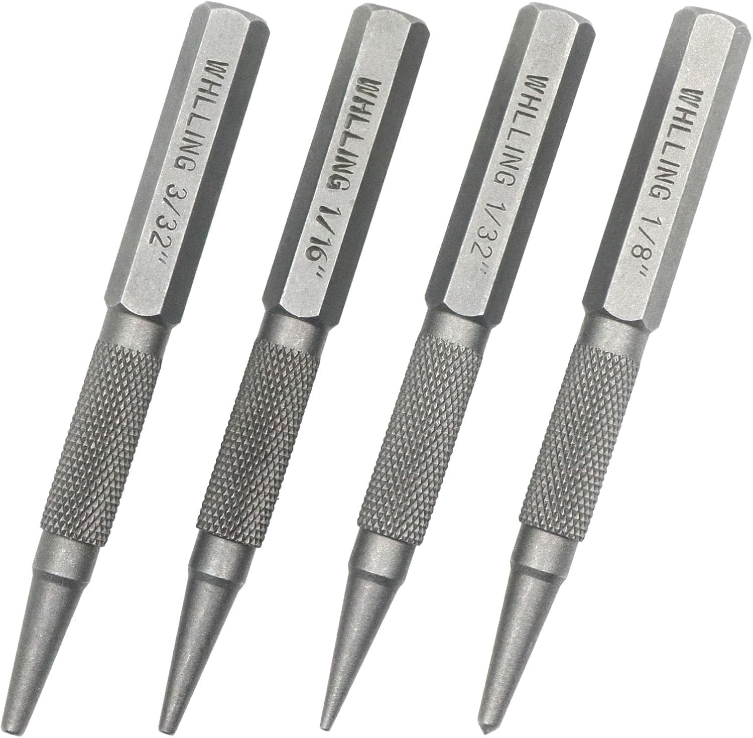 4-Piece Nail Setter Punch and Center Punch Set, Heat Treated Alloy Steel with Knurled Grip Most Commonly Used Sizes for Carpenters Woodworkers