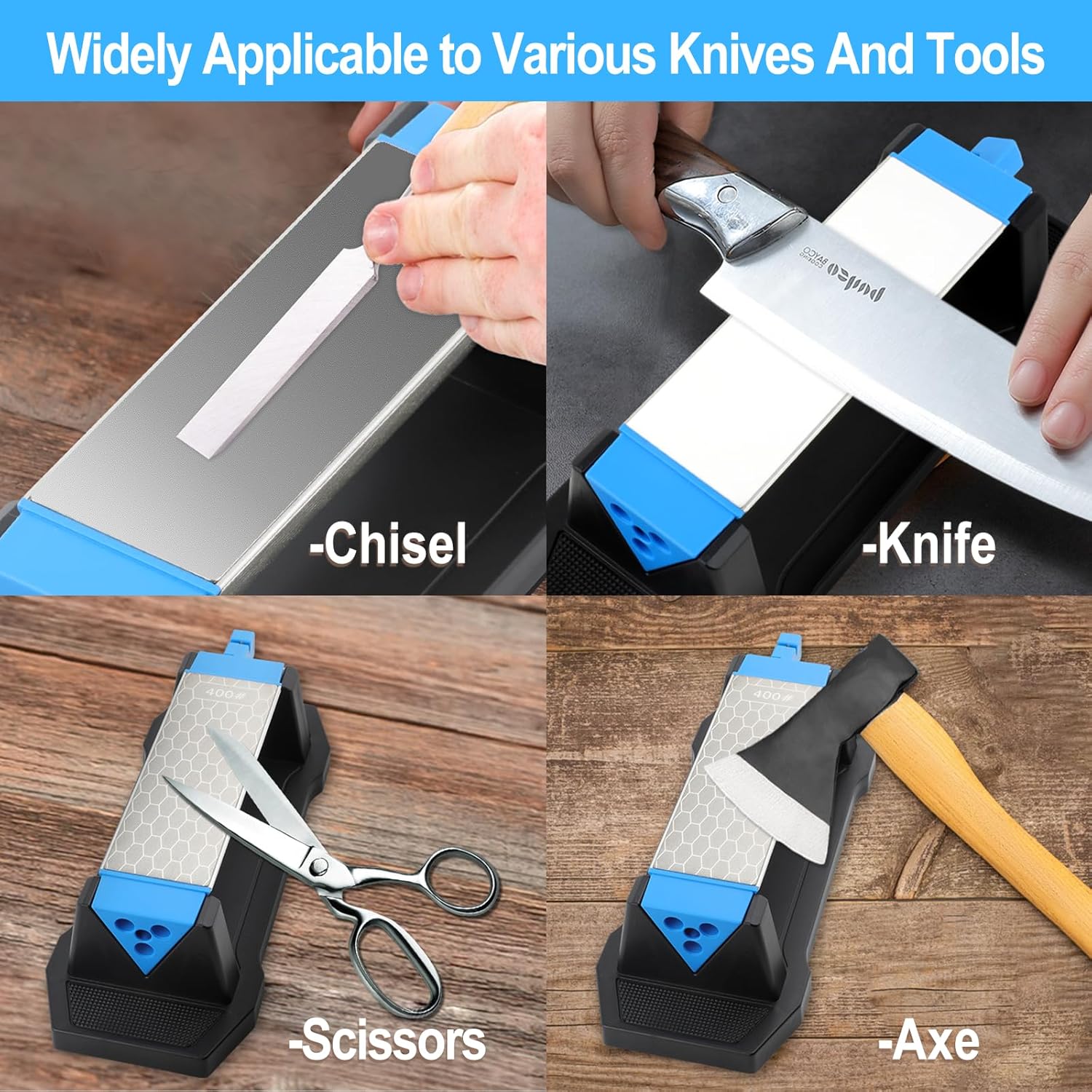 - Unique Design:This knife sharpening kit has 3 side grit, 400# with unique honeycomb design diamond sharpener can be used to repairing large gap or restore basic sharpness. 1000# diamond sharpening stone can be used for regular maintenance and honing of knives, so that the blade can achieve fine cutting function. 6000# ceramic sharpening stones suitable for fine polishing of blades.