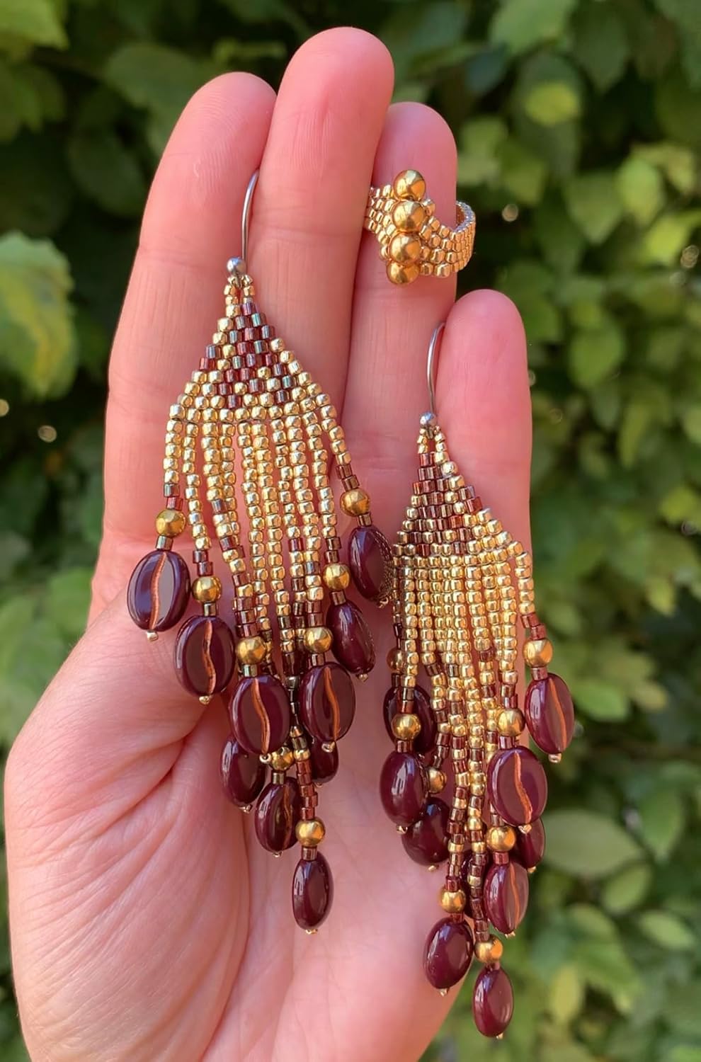 40+ Glass Coffee Bean Beads (0.9oz=25g) Czech Republic, 0.43 inch (11mm) Mix for Jewelry Making Decorations