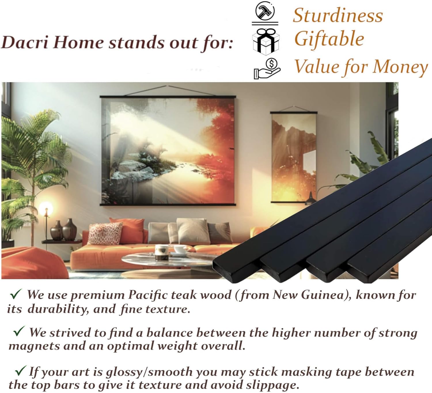 - ๐ EASY AND SAFE TO USE - hang your art in seconds, mark the seasons, celebrations, achievements, or any special moment. No glass to break, no splinters commonly found in other magnetic poster frames. 100% Teak Wood