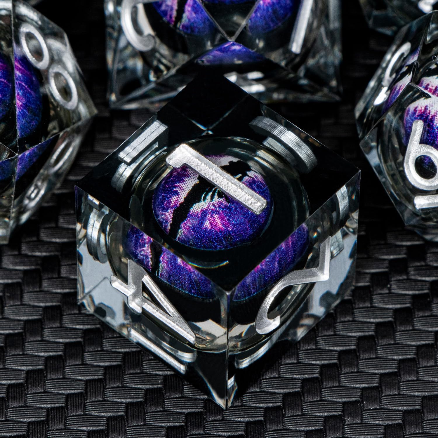ARUOHHA DND Resin Dice Dragon Eye Dice Liquid Core Purple Sharp Edged Dice Set with Gift Box, Dungeons Polyhedral D and D Dice Set Compatible with D&D Role Playing Game D20 D12 D10 D8 D6