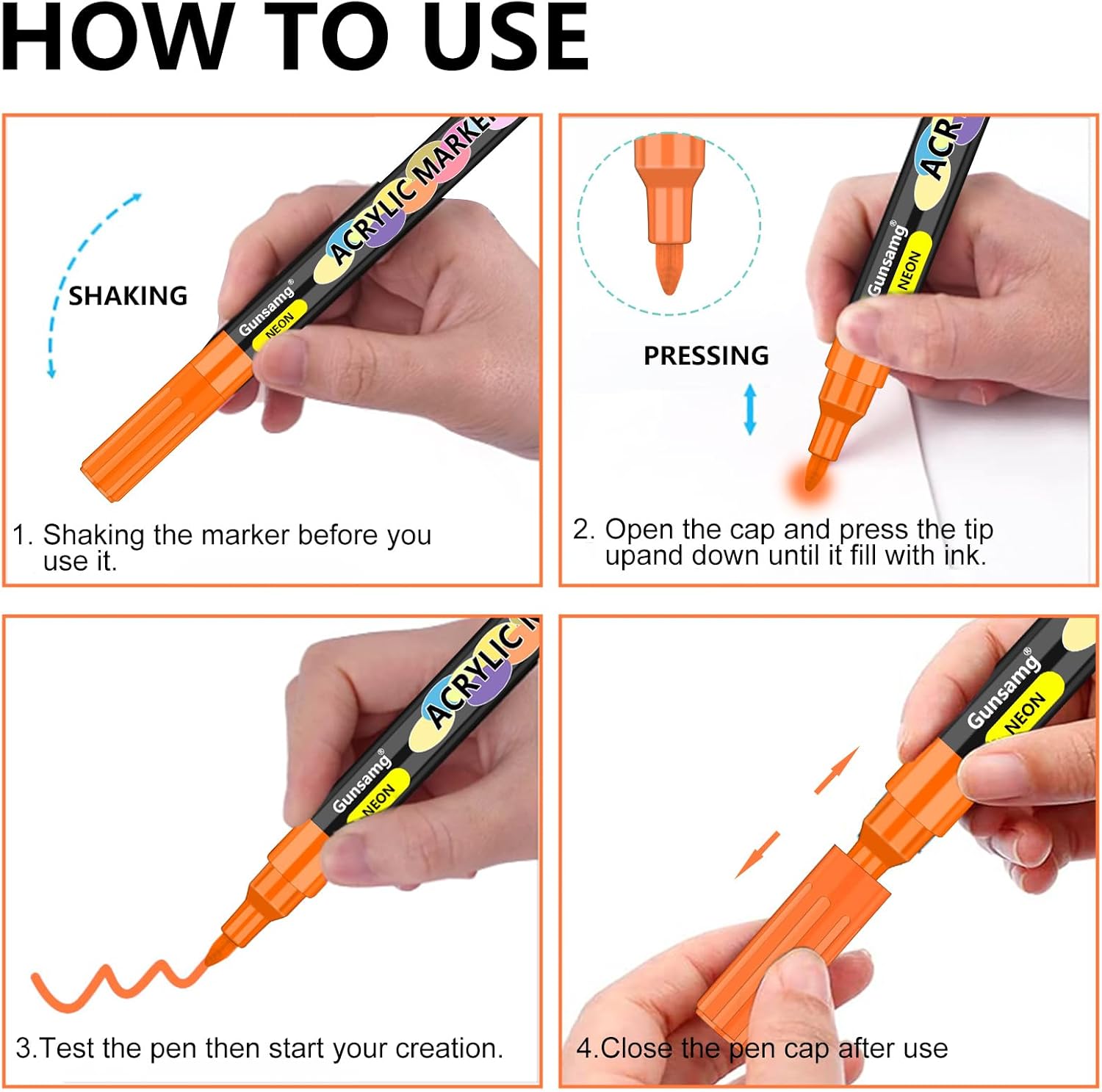 - Permanent, Waterproof & No Bleed Ink:Unlike ordinary markers, our acrylic paint pens feature water-based, opaque ink that is waterproof, quick-dry, and no bleed. Great for outdoor projects, fade-resistant designs, and long-lasting art on multiple surfaces.