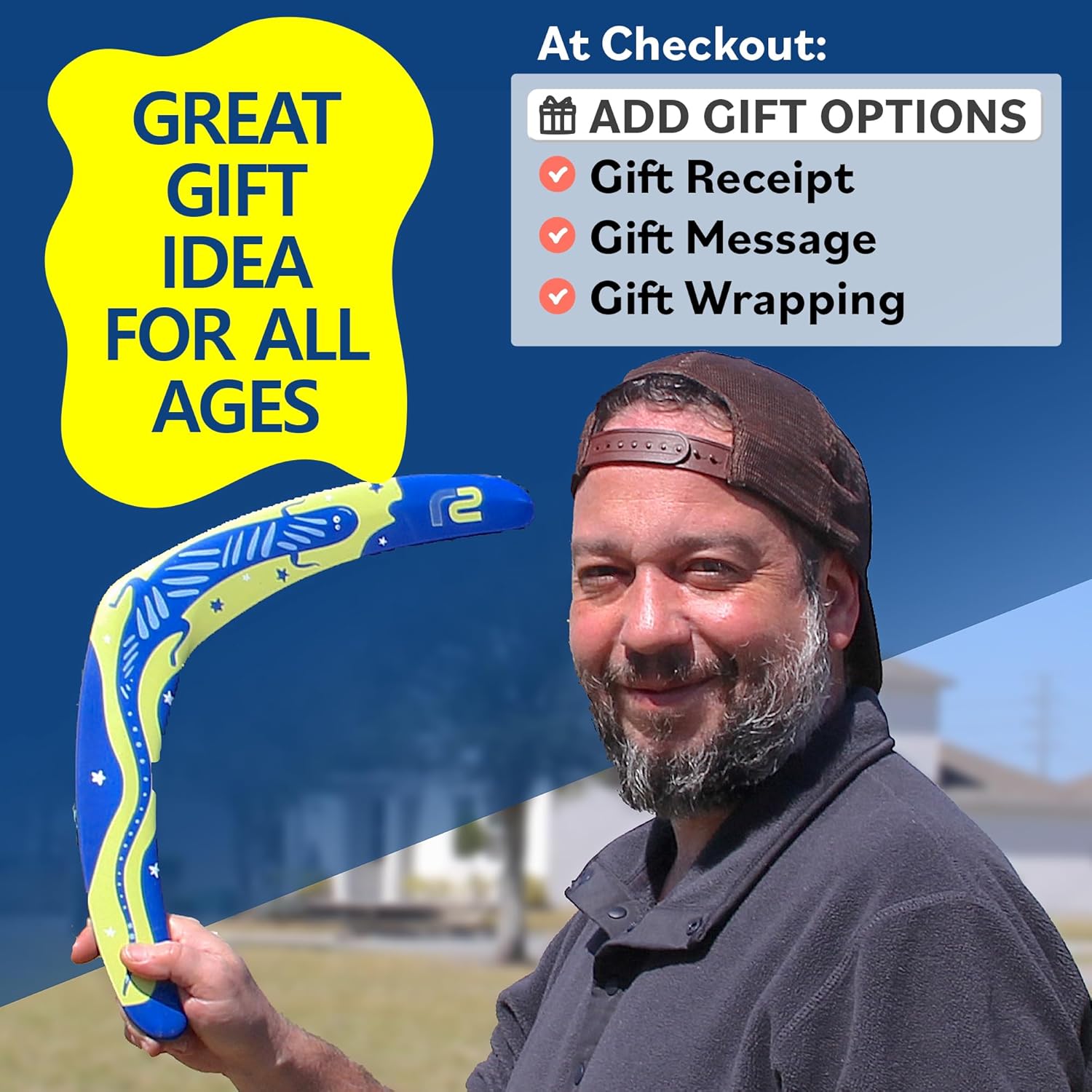 Boomerang for Adults & Kids - Fun Easy to Throw Boomerangs That Really Work - Soft to Catch Best Stocking Stuffer Gifts for Boys & Girls - Outdoor Gifts for Men & Women - 2025 Gift Idea for Teen Boys