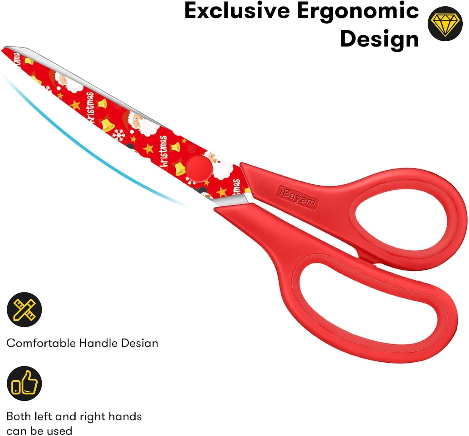 - Comfort-Grip Handles: Designed for maximum comfort during extended use, long time handwork/packing without abrasion, 30% less effort than traditional scissors, reducing hand fatigue. Christmas supplies suitable for teachers, e-commerce packing, crafts enthusiasts,etc.