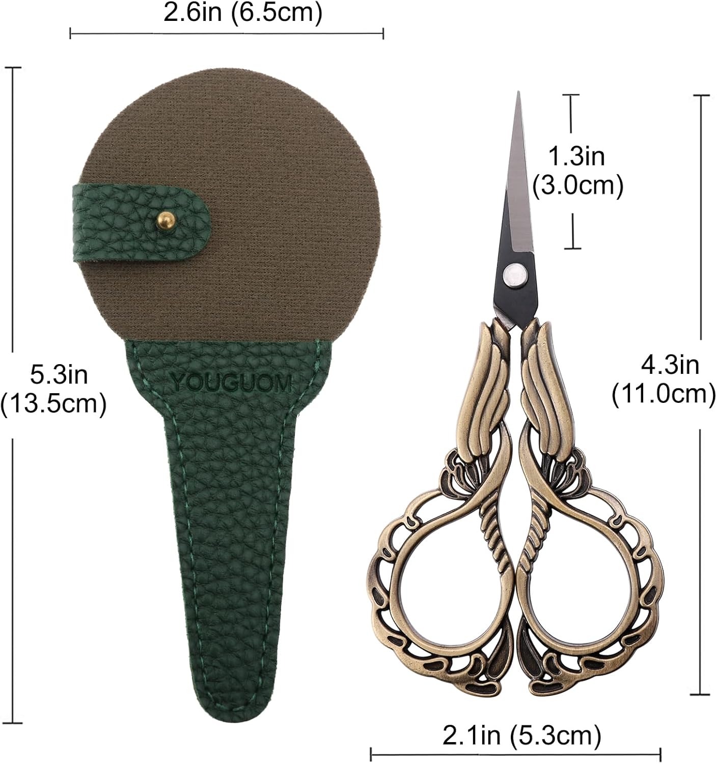 - Packaging:1 x Bronze Antique Embroidery Scissors,1 x Green Scissors Sheath. Each Beautiful Craft Scissors is Hand-tested and Selected to Ensure the Quality You Expect. Any Questions, Please Let Us Support for You
