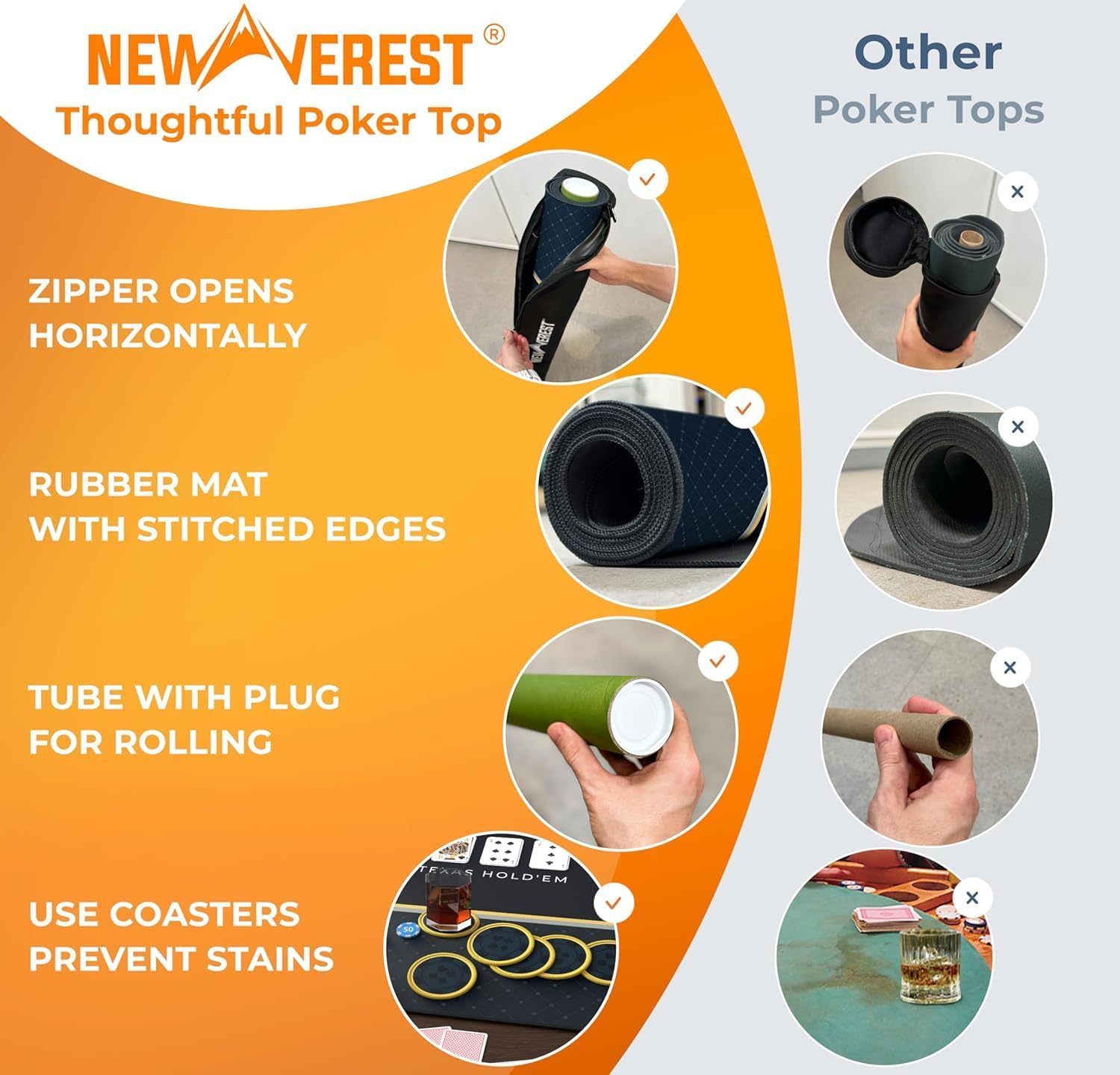 Newverest Poker Table Top 70" x 35", Texas Hold'em Poker Mat for Home Game Nights Up to 10 Players, Casino| Poker Topper Cloth for Tables in Zipper Storage Bag with 8 Coasters in Poker Gift-Ready Box
