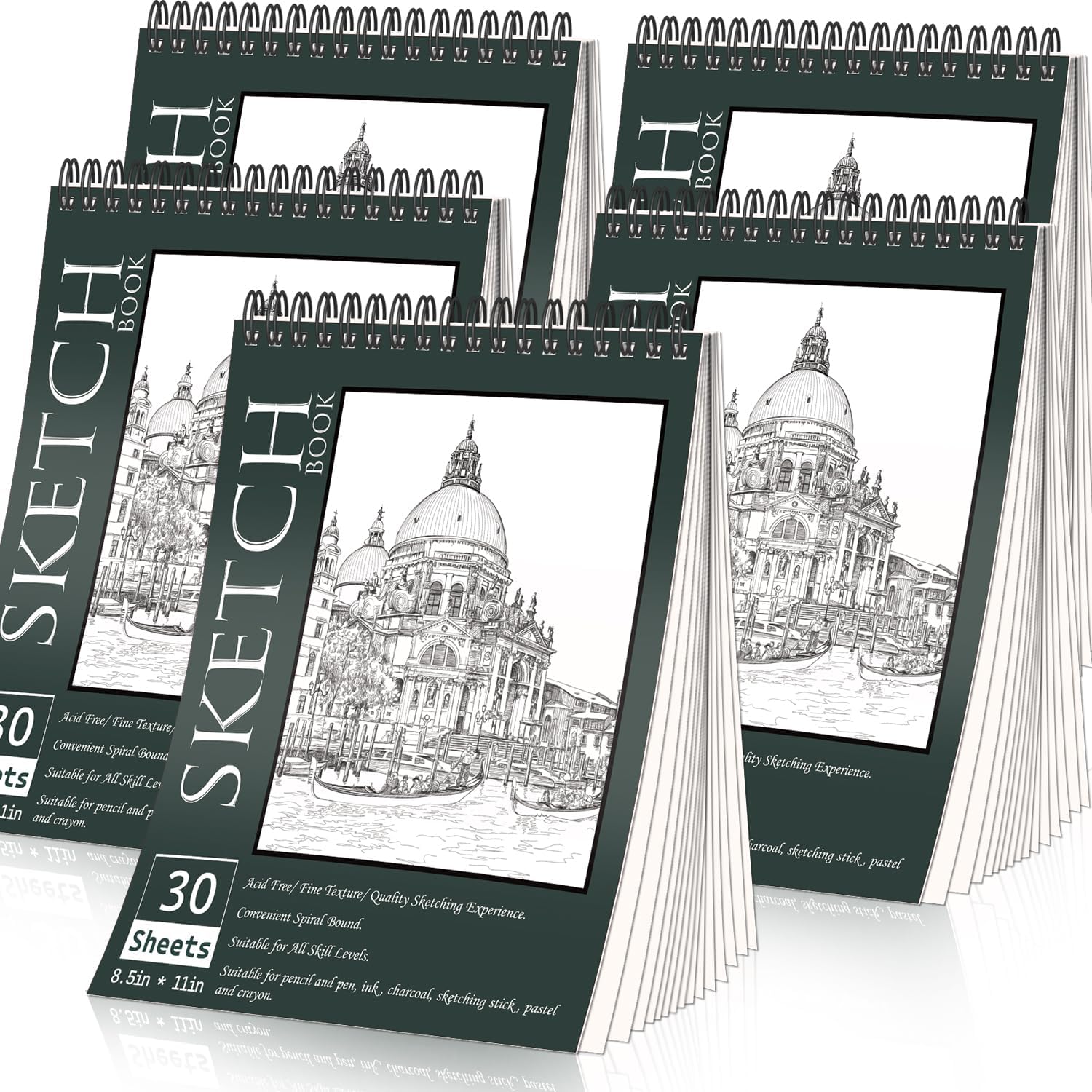 - Set of 5 Sketch Book: You will receive 5 sketchbooks in a package. Each sheet measures 8.5x11 inches which adopts 68lb/100gsm paper. Each sketch book come up with 30 sheets, totaling 150 sheets. Adequate quantity allows you to share with your friends and colleagues.