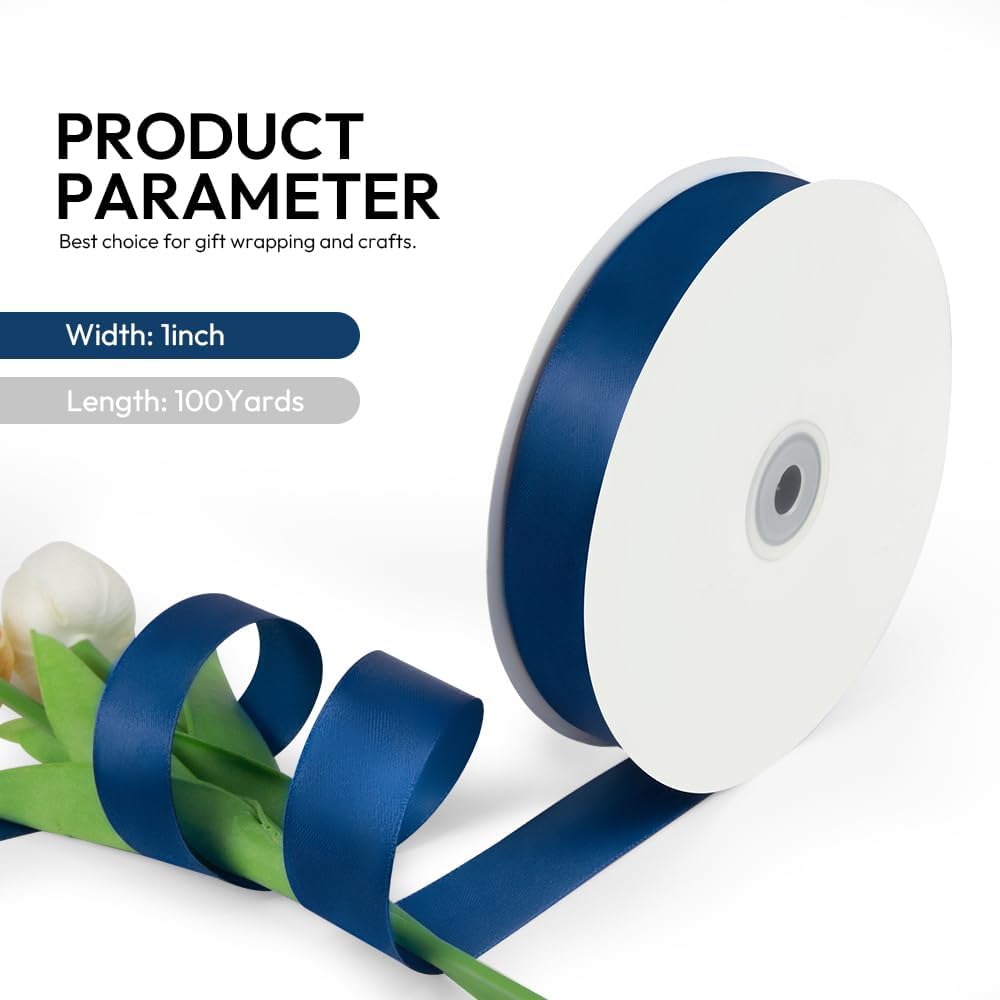 - 【High Quality】: Our fabric satin ribbon is made of 100% high-quality polyester. The single face ribbon for gift wrapping is Dark Blue(Navy) color and has smooth texture which is easy to cut and use.