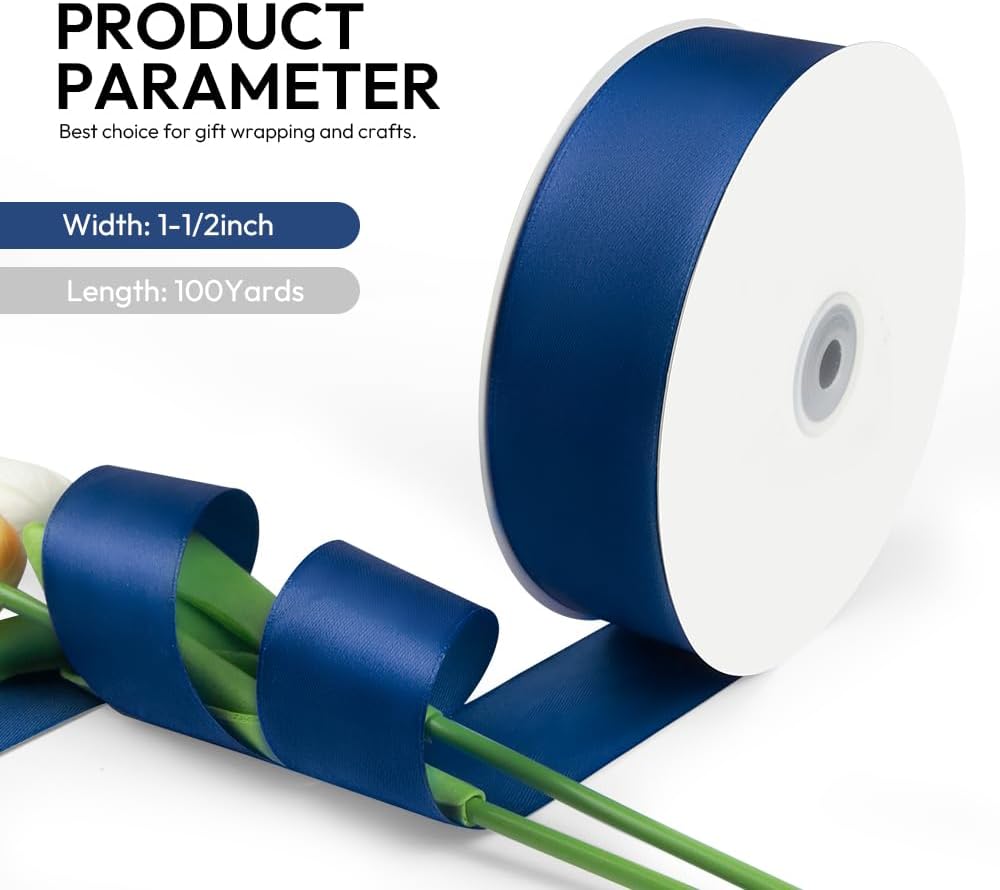 - 【High Quality】: Our fabric satin ribbon is made of 100% high-quality polyester. The single face ribbon for gift wrapping is Dark Blue(Navy) color and has smooth texture which is easy to cut and use.