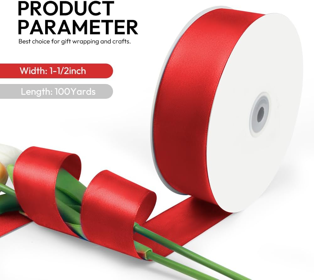 - 【Ribbon Dimensions】: Each satin ribbon spool is 1.5 inch width with total length is 100 yards, which has enough amount for your daily need. The gift wrapping ribbon can be easily stored and the spool is space-saving.