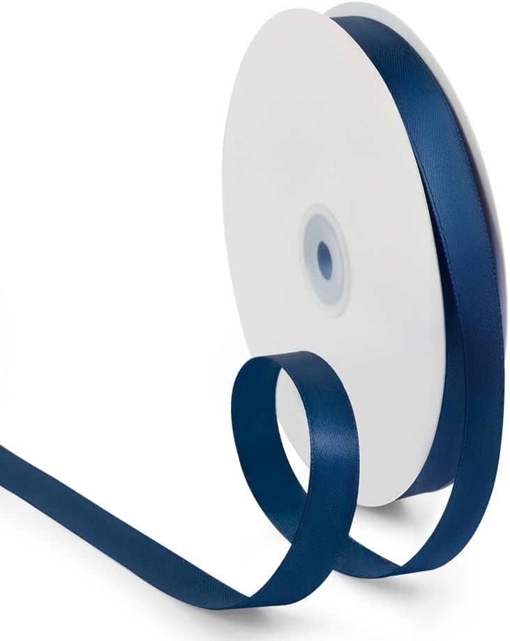 - 【High Quality】: Our fabric satin ribbon is made of 100% high-quality polyester. The single face ribbon for gift wrapping is Dark Blue(Navy) color and has smooth texture which is easy to cut and use.