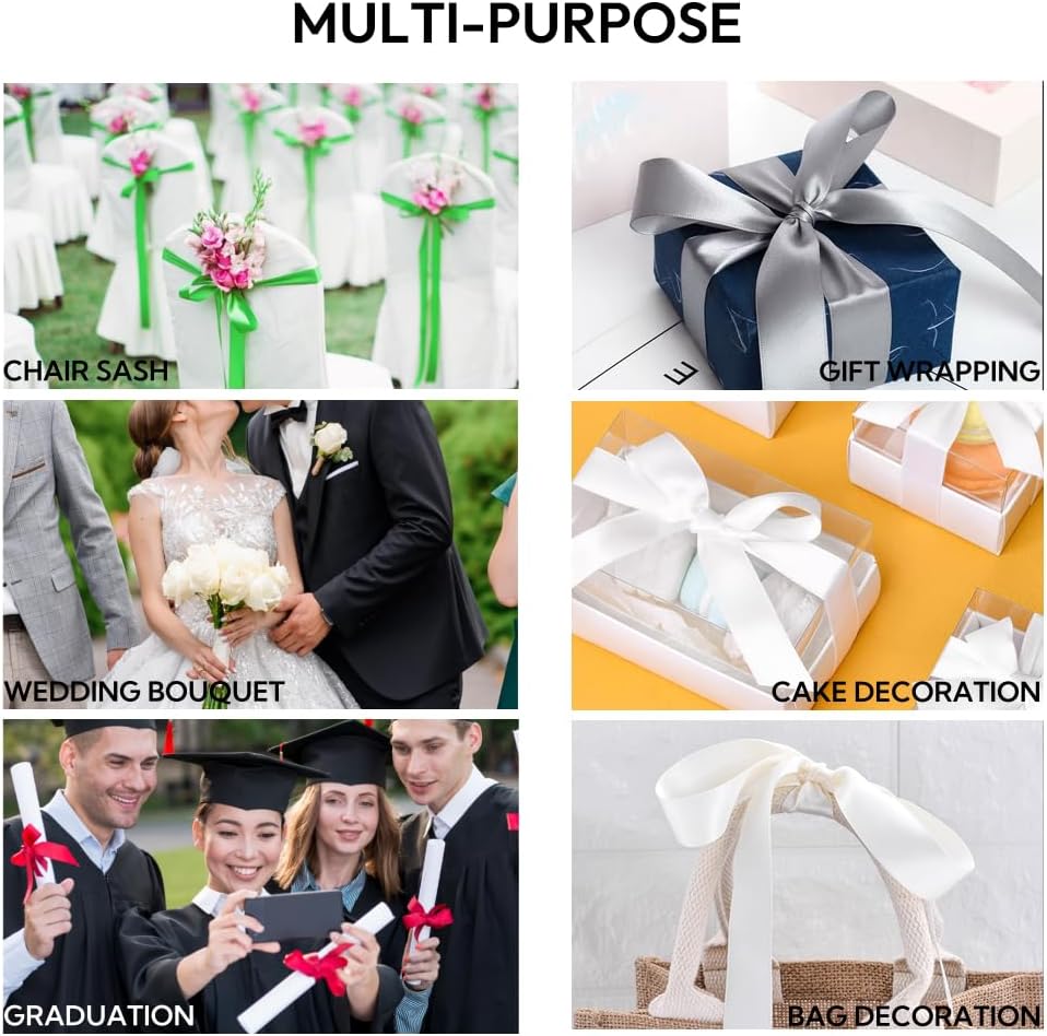 - 【Gift Wrapping Accessories】: The satin ribbon for wrapping presents is constructed with dense and sturdy weave which can help you accomplish multiple projects for different festival events, such as Valentine's Day, St.Patrick's Day, Easter Day, Christmas, Thanksgiving, Halloween, Mother’s & Father’s Day, Children’s Day and more.
