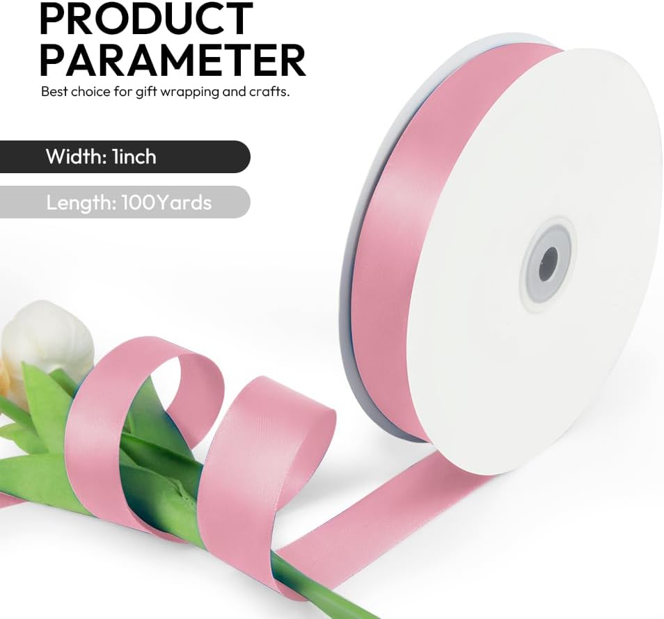 - 【Ribbon Dimensions】: Each satin ribbon spool is 1 inch width with total length is 100 yards, which has enough amount for your daily need. The gift wrapping ribbon can be easily stored and the spool is space-saving.