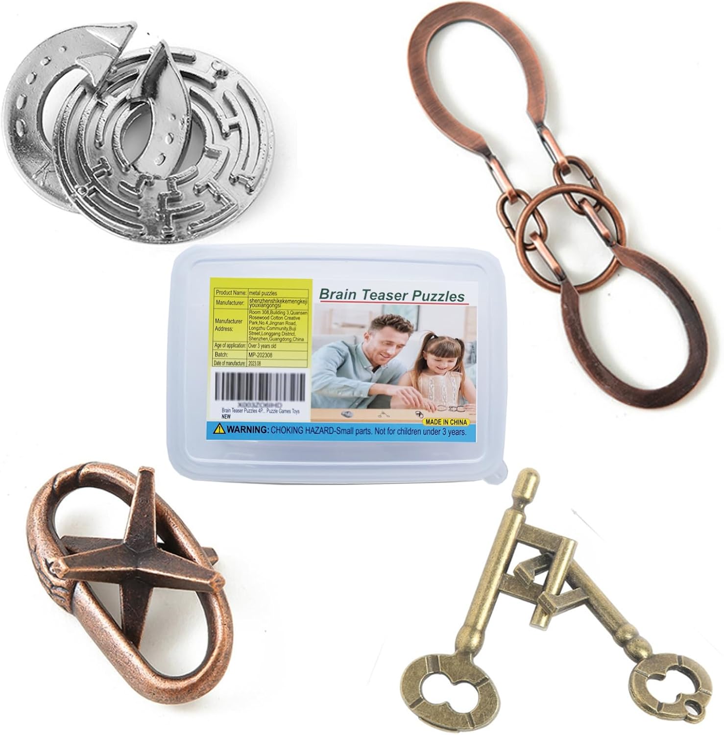 - π SAFE AND DURABLE: 4 in 1 metal brain teaser puzzles are made of high quality thick and durable alloy material. Smooth and burr-free, no need to worry about scratches, perfect for long-term play.